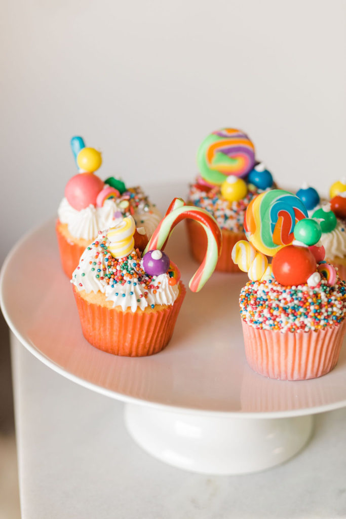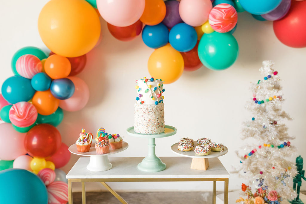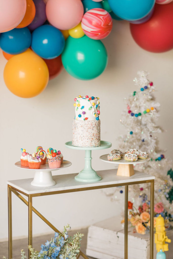 On to our cute little dessert set up!!! Sugar Crush Sweets did it again with her creative desserts! She did a two-tier magical cake, fun donuts, and the most amazing candy cupcakes!! Her take on Merry & Bright is definitely one I can get behind!!