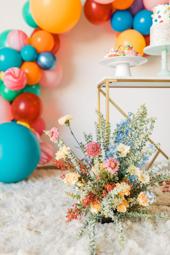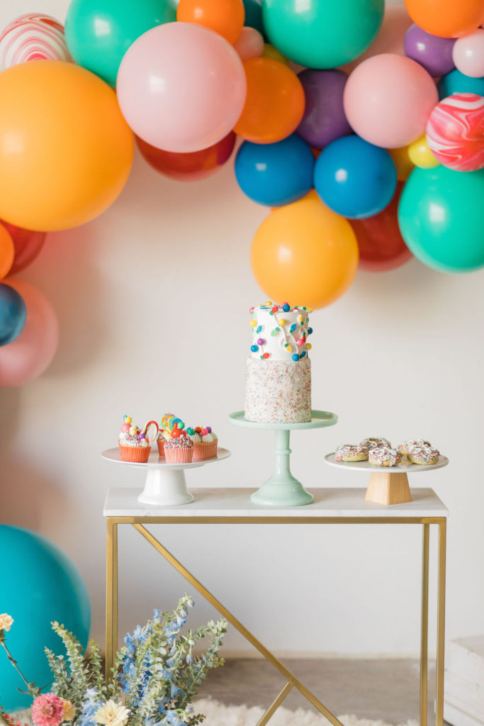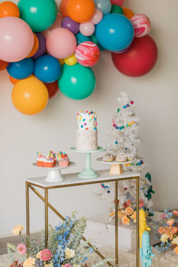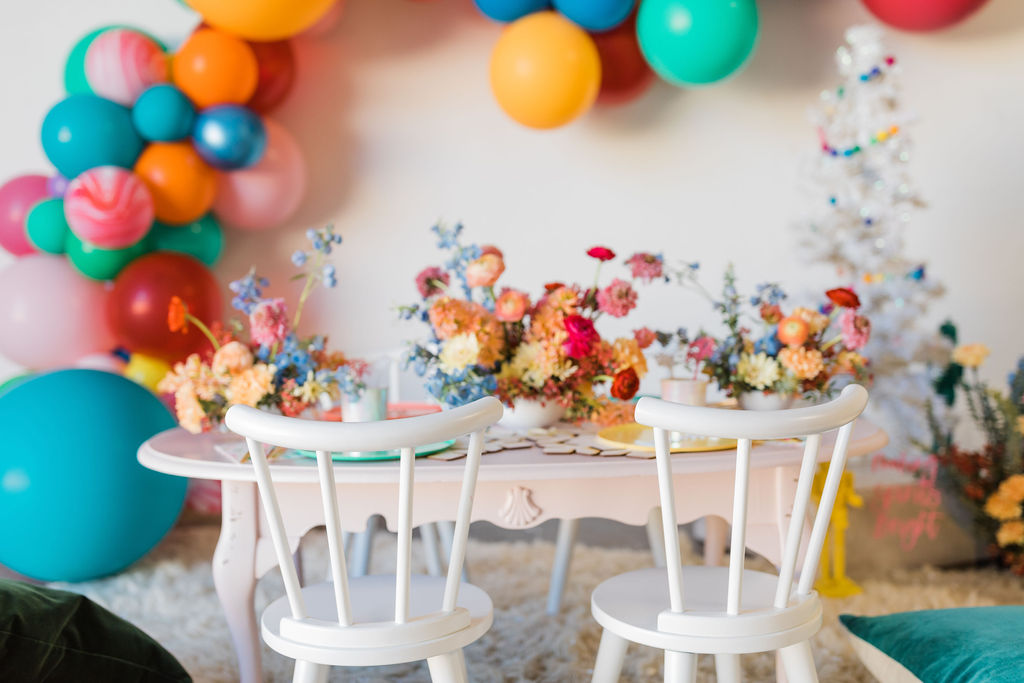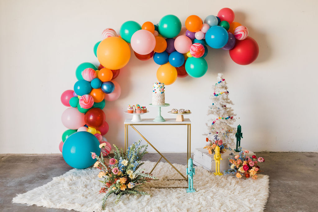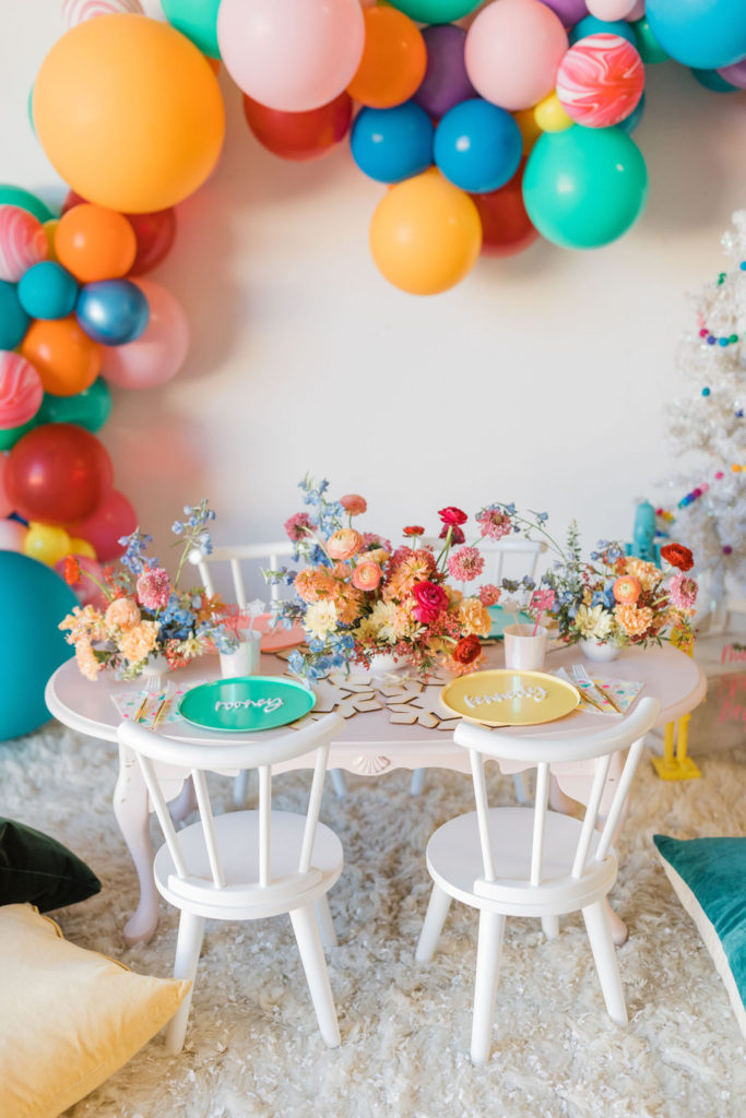 Now on to our fun and festive table!! The balloons just make it every time, don’t they?! And of course, The Pop Shop takes care of that magic for us!! We did every color in the rainbow and even added some fun swirly balloons that reminded me of candy canes!