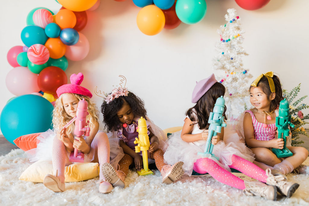 Of course these gals were decked out in The Daydream Republic’s holiday goodies!! Carissa styled each girl up perfectly and they were dressed in the cutest bright and colorful outfits for our party. So much sparkle and so much fun!!