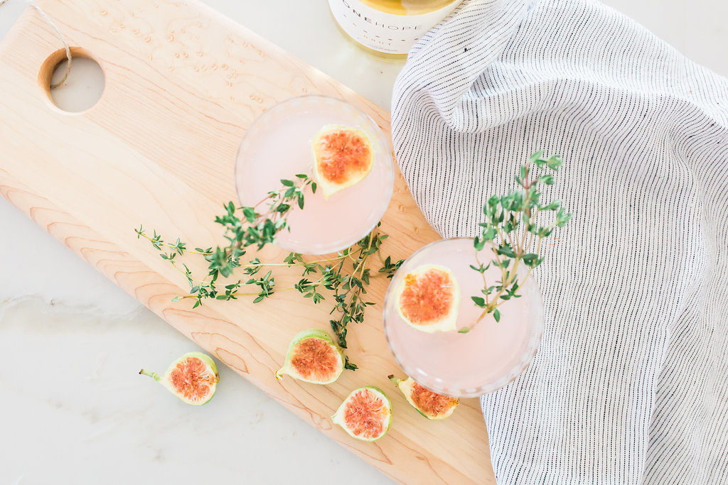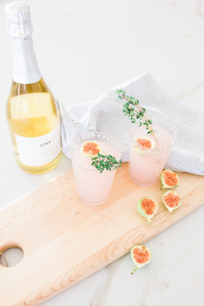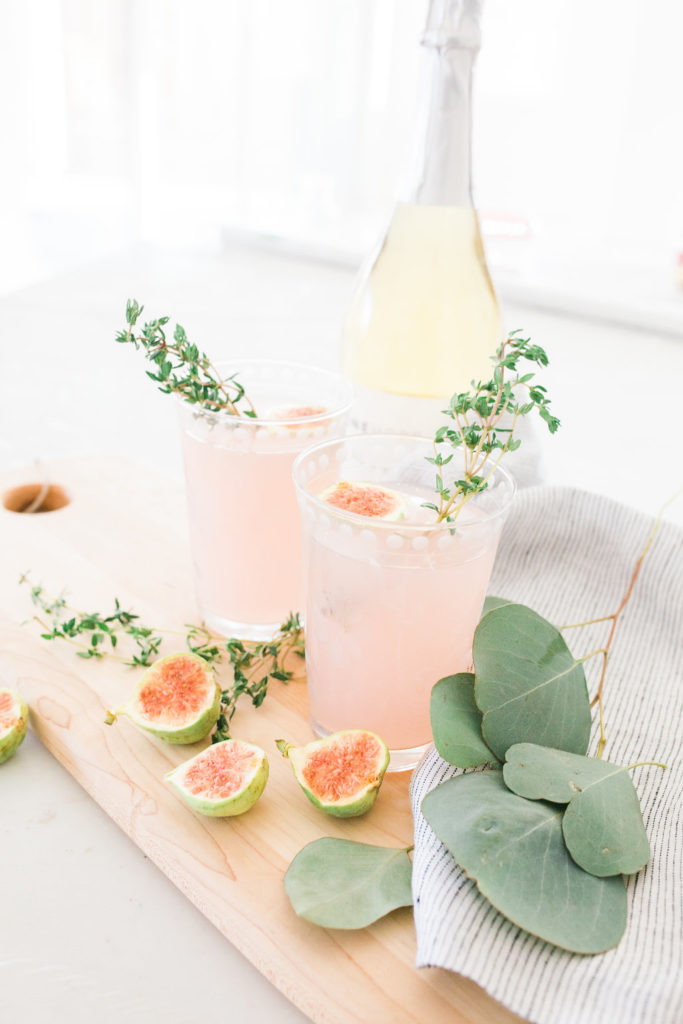 This past weekend I was at the farmer’s market and stumbled upon a bounty of fresh figs. I grabbed a bunch and knew my Sunday was going to get a lot better trying out some new fig cocktails. You know how you spend Sunday cooking up yummy fall soups and dishes that smell your house up? Well, I spend mine taste testing cocktails. Someone’s gotta do it right? When I think of figs, I think thyme, fresh citrus, and some sweetness. The fig honey thyme prosecco to me is the perfect fall drink. It’s got all the feelings of warm and cozy with the thyme, fig, and honey. And, add in the fresh citrus, elderflower, and bubbly, and you just created a warm fall floral bubbly.