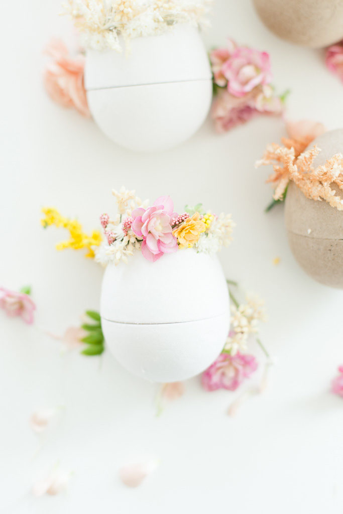 When buying the fake flowers, look for tiny ones. Big flowers will obviously not work here. Look for ones that are maximum an 1/2 inch small. Any more significant, and it will look funny and oversized on the eggs.