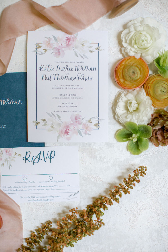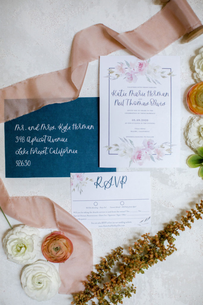 Another place we use florals at weddings or events is when styling the details! In this case we used florals and ribbon to style the invite and it’s just another way you can pretty up your wedding!