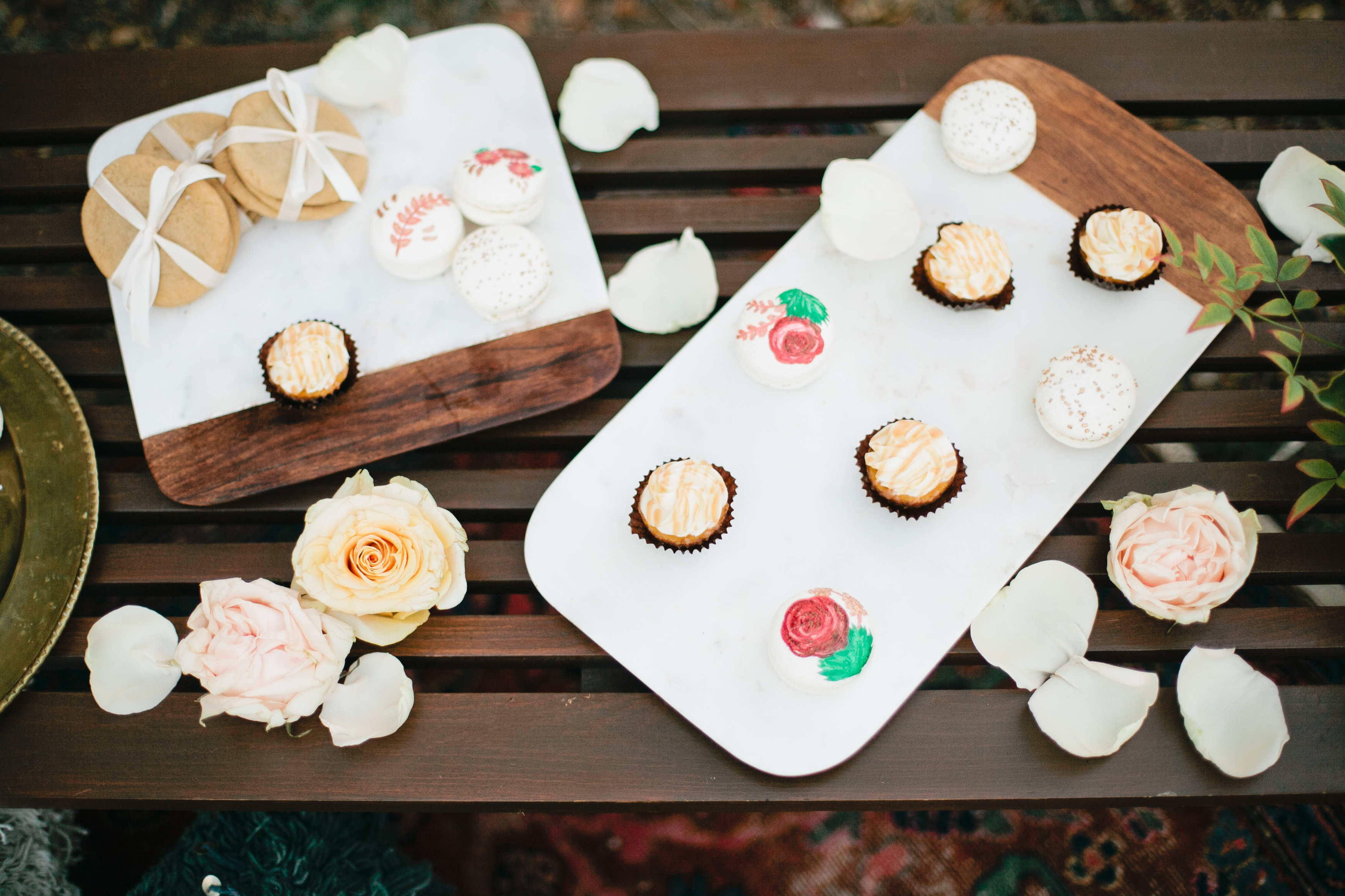 Now, we can ALWAYS count on Sweet and Saucy to deliver in the desserts department and this was no exception… We had tasty pumpkin treats, macarons with our lovely Fall floral inspiration hand painted on, sugar cookies wrapped with a bow for each guest, and wait till you see what was at each place setting…