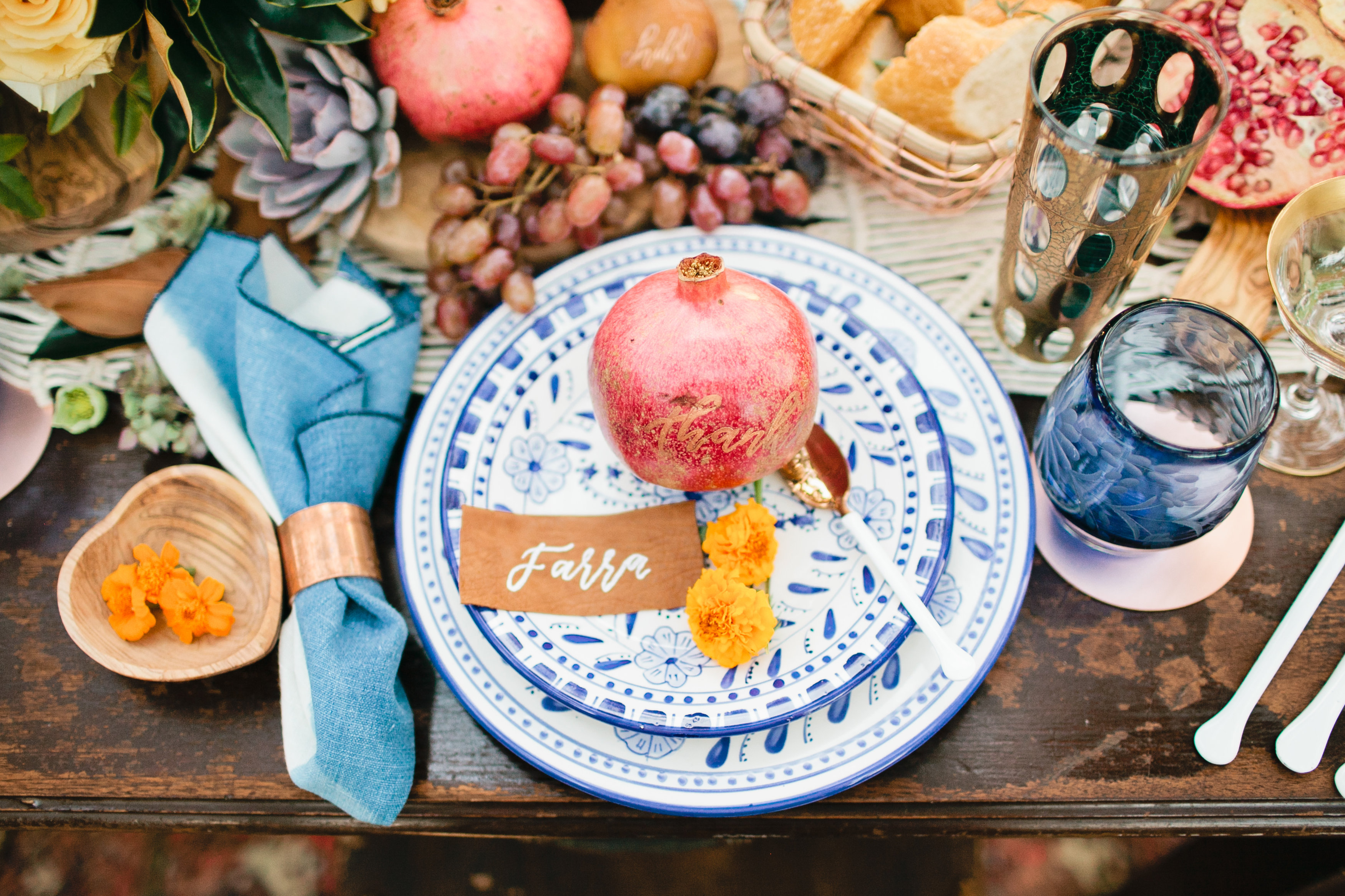 This Friendsgiving setting we created was inspired by the lovely burgundy tones of Fall with the fruits of the season like pomegranates, mixed with cobalt blue tones that we love from our friends at The Little Market! Take a look with us and also head over to 100LayerCake today to see all the goodness!