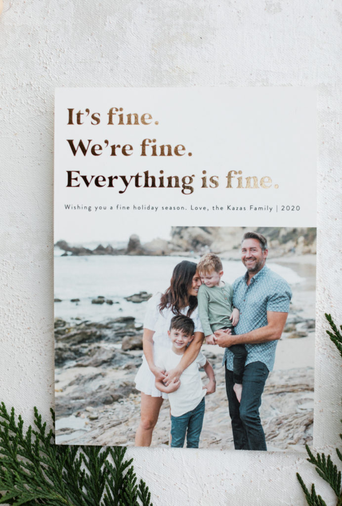 My husband tends to like a funny card. We’ve sent out a few in the past, this year when I began looking on Minted this one immediately caught my eye! Both my husband and I thought it was hilarious and perfectly described 2020. If you’re gonna send a card like this, this is the year!!