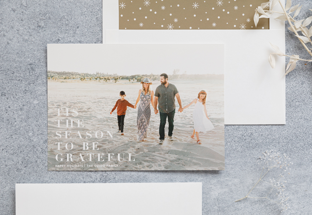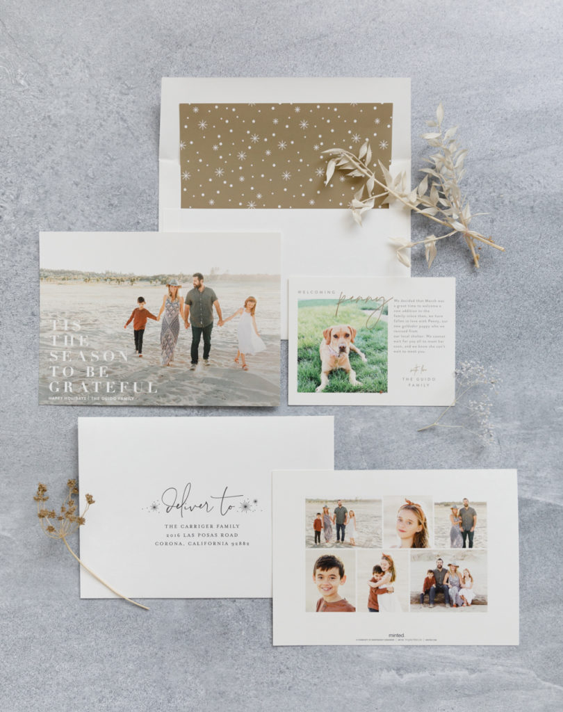 Abby and her sweet family chose a more traditional card that went with both the cool and warm tones her family was wearing in her photos. She highlighted being grateful for what they have this year and I’m loving that approach to 2020! Plus, she added a cute little insert to showcase their new addition to the family, Penny the pup!