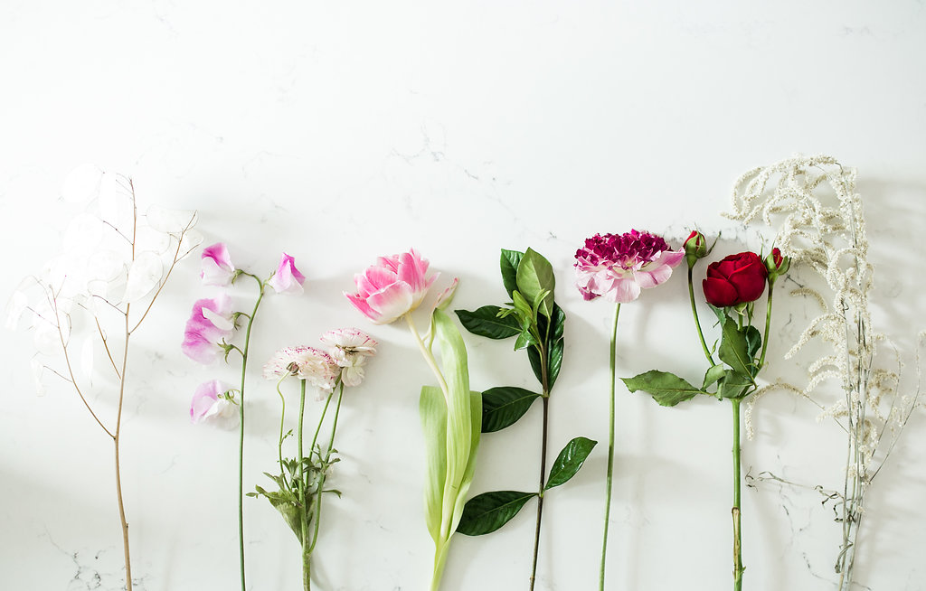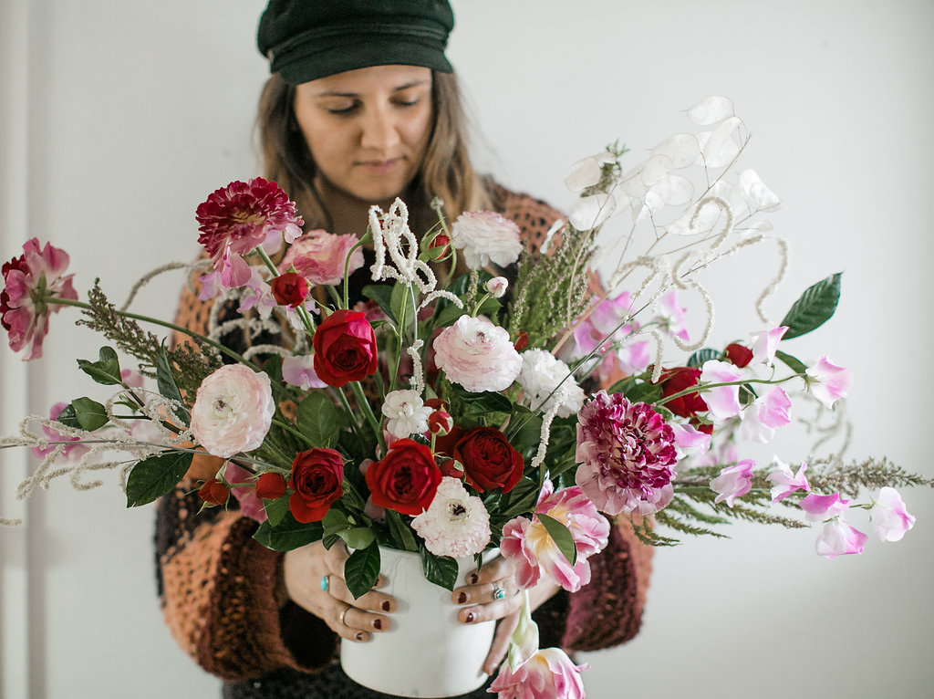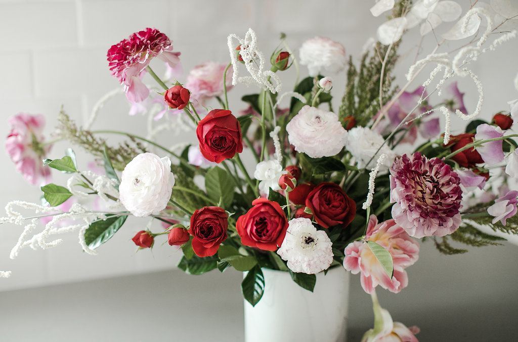 I got to use some of my favorite flowers for this one: ranunculus, sweetpeas, garden roses & tulips. When you have pretty product like that, there is no right or wrong way to do flowers and flowers are a direct representation of you.