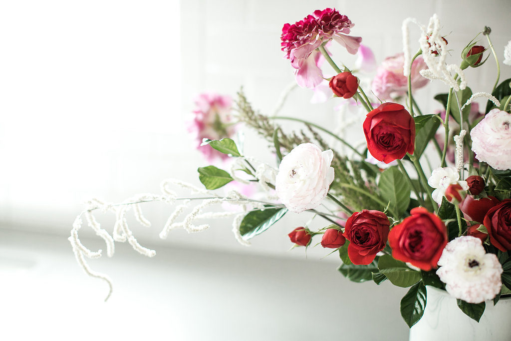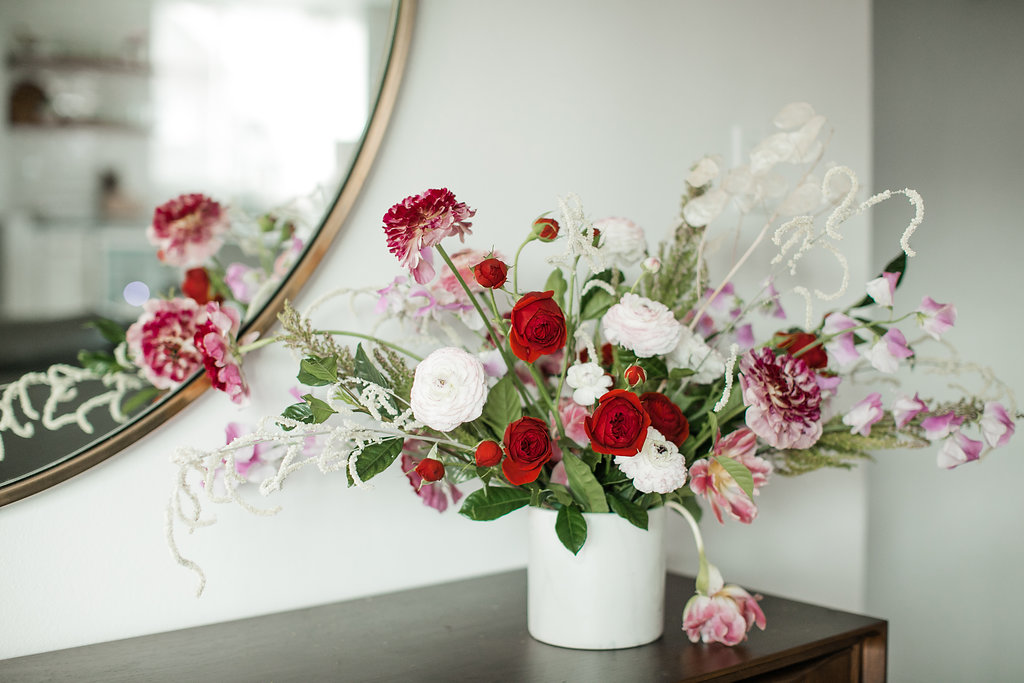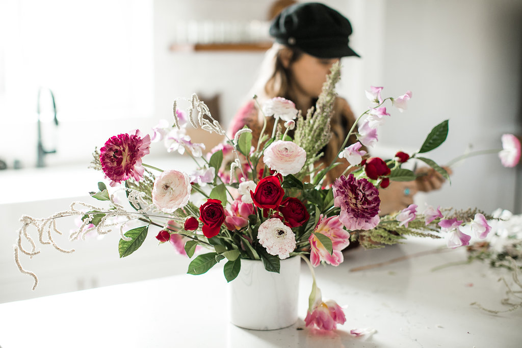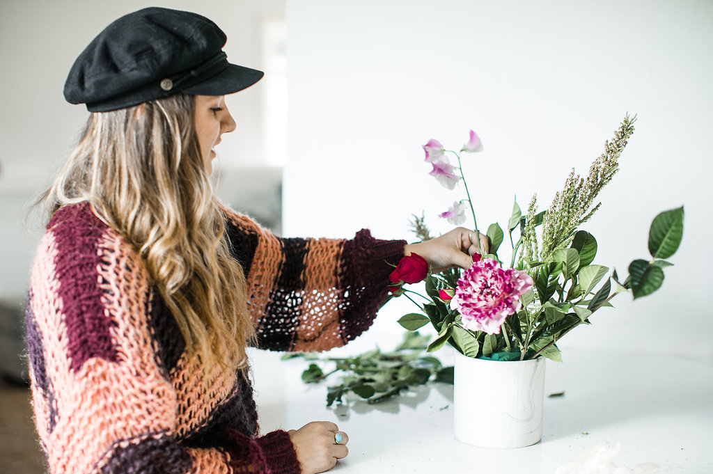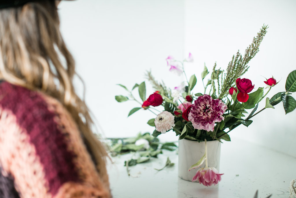 I think one thing we can all agree on, is everyone loves flowers.  Truthfully when we have nothing to post on Instagram, we always turn to those pretty flowers.  Well when it’s Valentine’s Day you’ve gotta have some flowers, no questions asked!  Of course when thinking of pretty flowers I think of my friend Mackenzie owner of Rooted & Wild.  Not only is she beyond sweet but she’s also beyond talented.  She was the perfect person to ask for a DIY flower arrangement.  One of the reasons I love to work with her is that her style is always so organic and flawless, which you’ll see here…