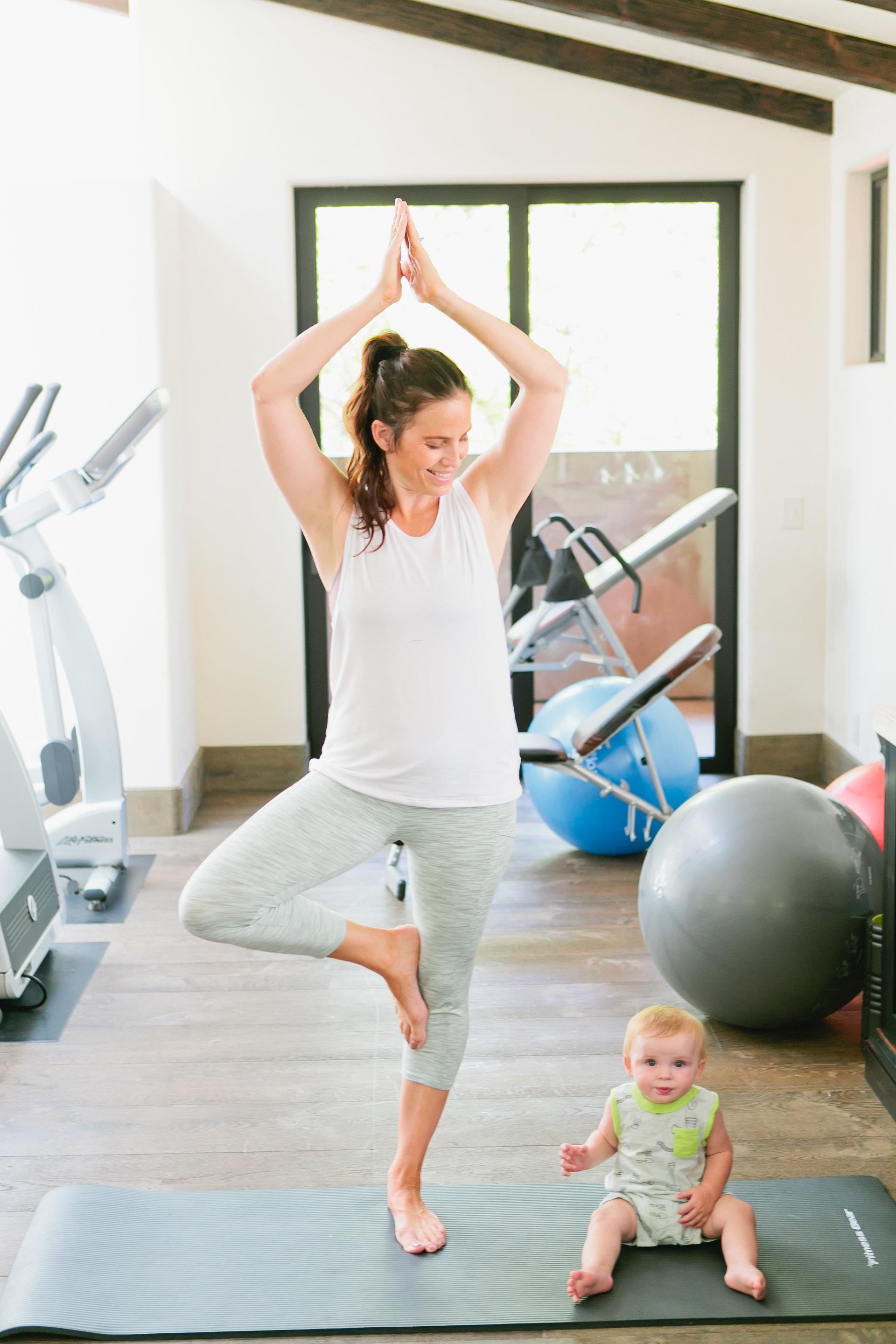 To let him be included I’ll do the Superman with him on my legs or have him sit on my belly while I do certain stretches. I’ll also lay out his toys while I do more complicated things, but he tends to think what I’m doing is more interesting. Who can blame him? Some of these yoga poses are pretty silly!