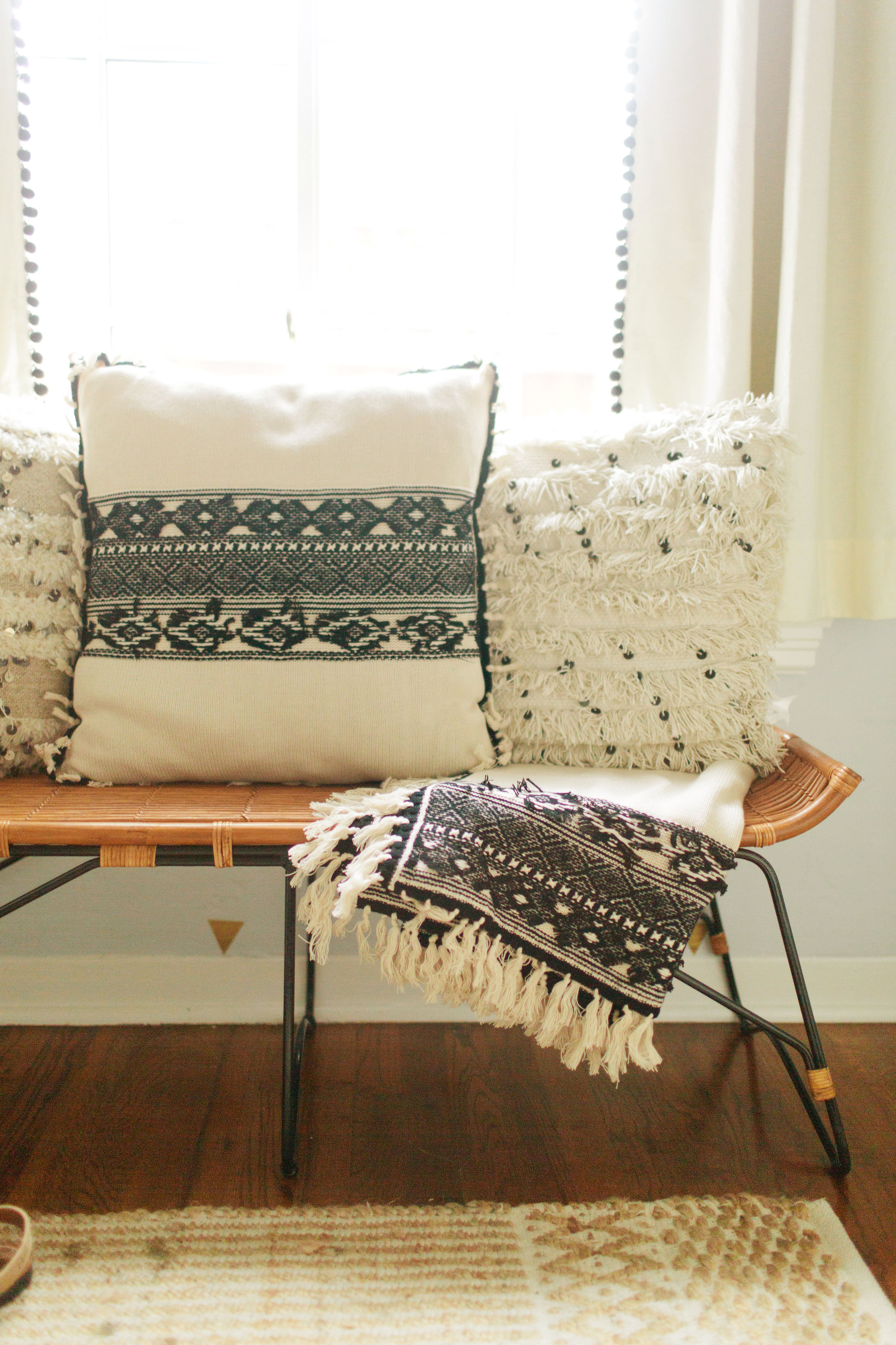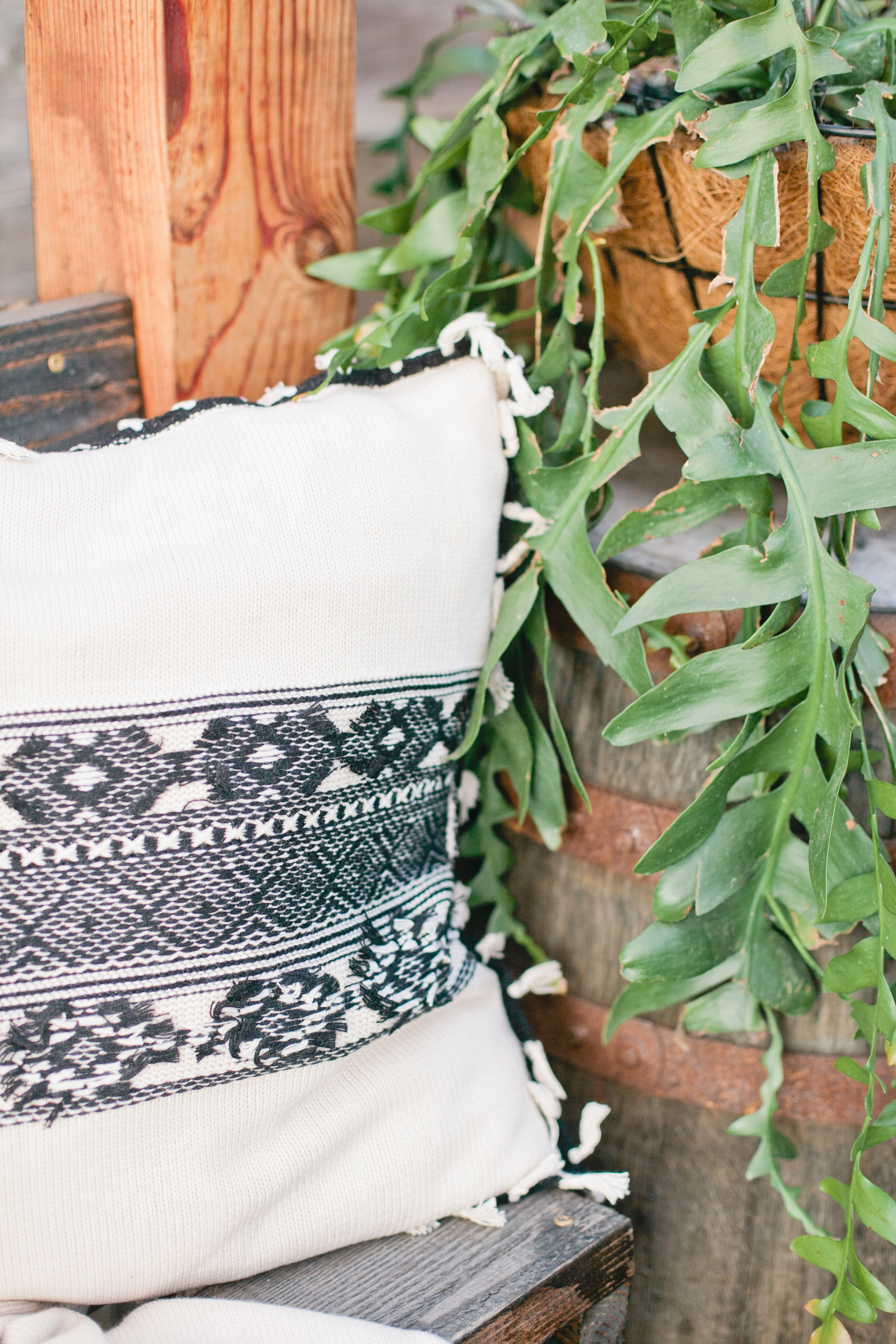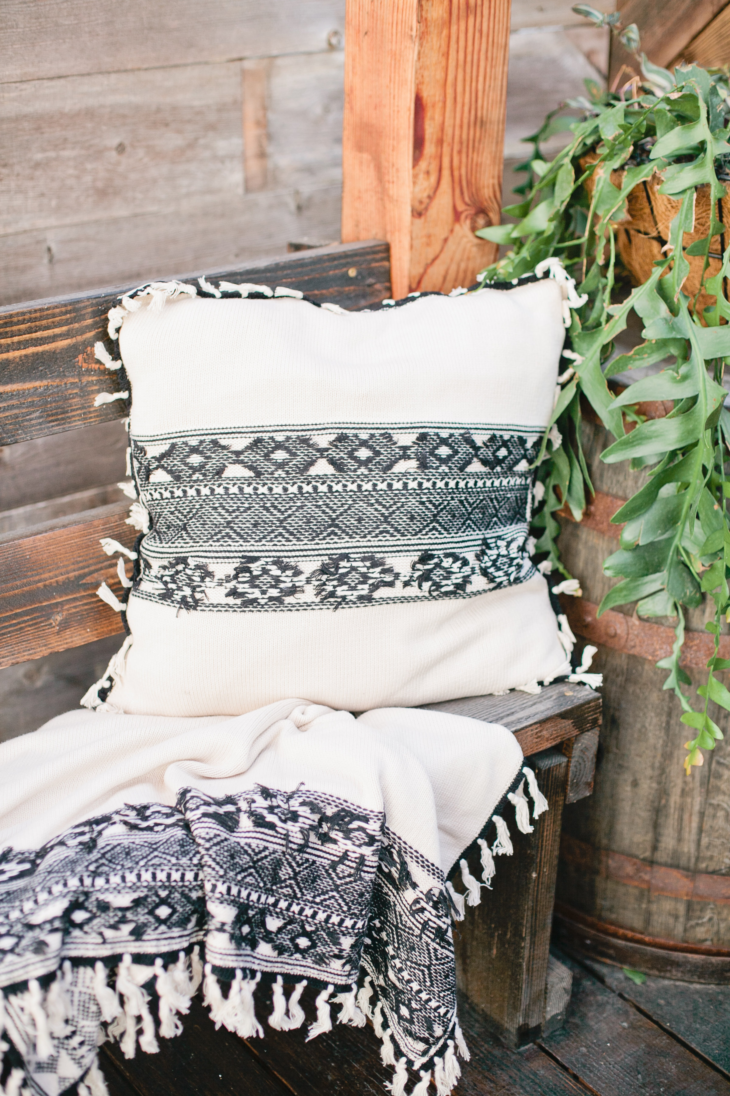 Last but not least, me! Haha! I styled my set outside, because even though the temperatures are cooling down it’s still nice out and you still want to entertain outdoors. With those cooler temps you need to warm up and it’s nice to have this cozy blanket for guests and yourself! We love the idea of having an impromptu little fiesta outdoors with your friends and some cocktails and of course, your Chaser pillow and blanket!