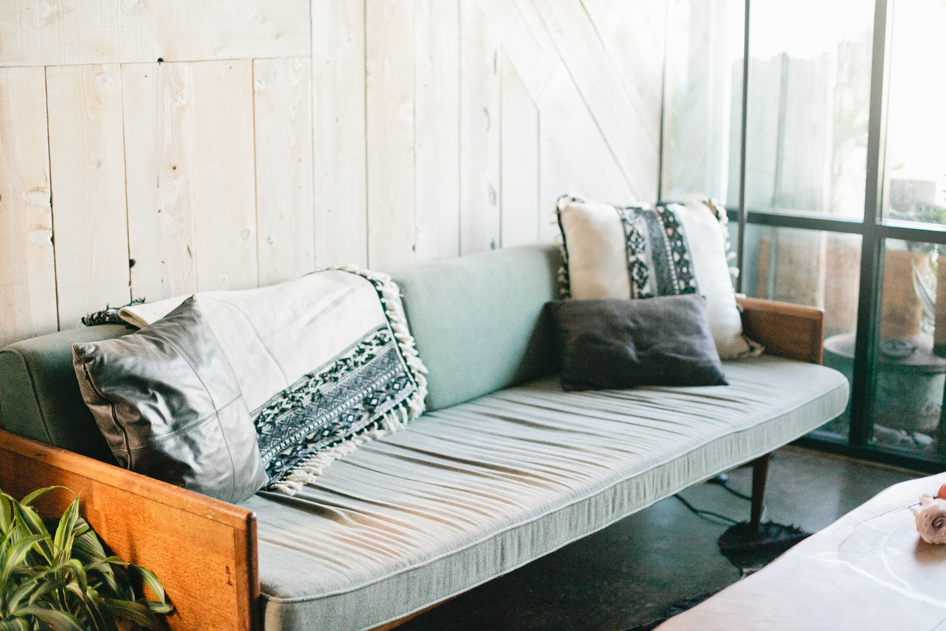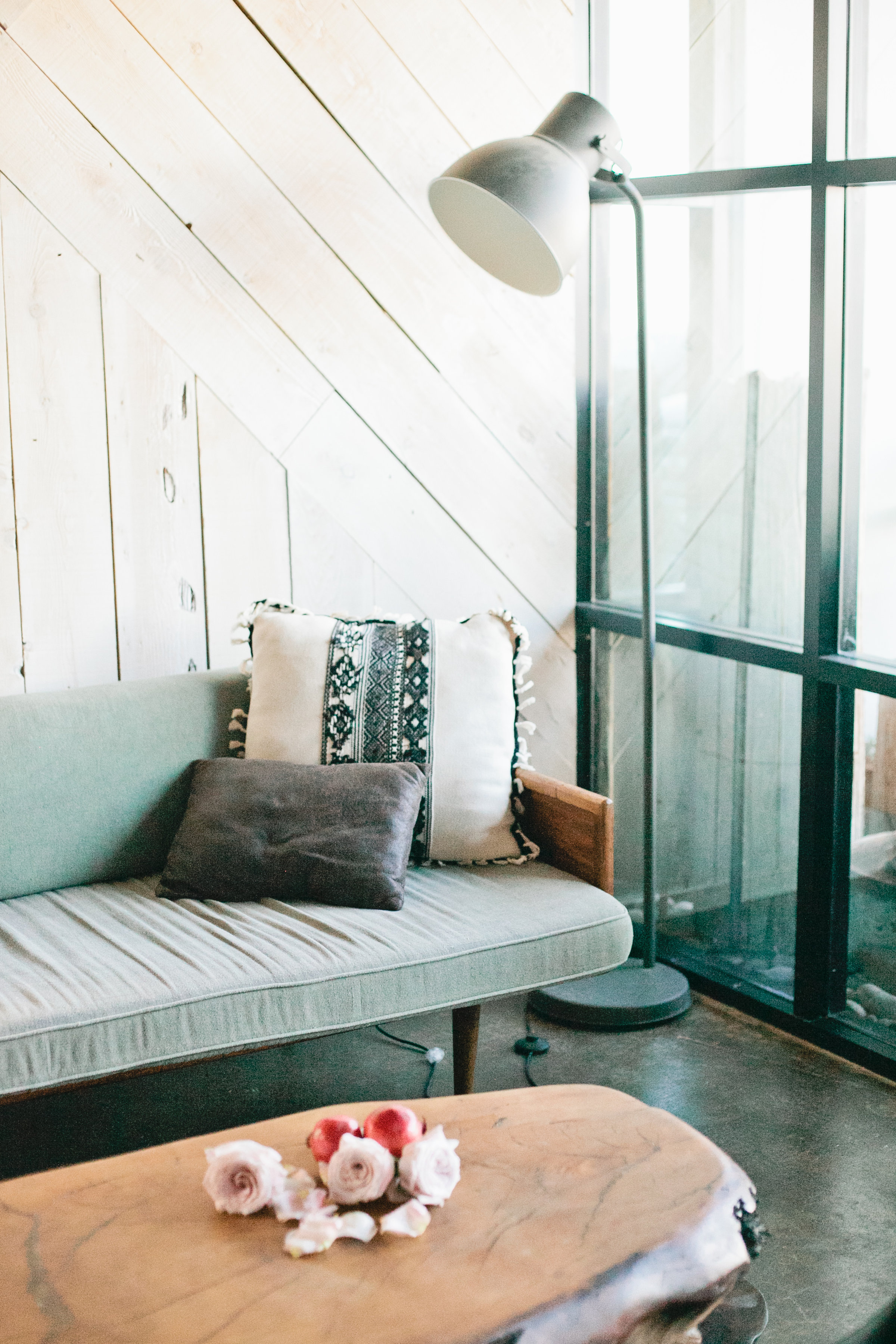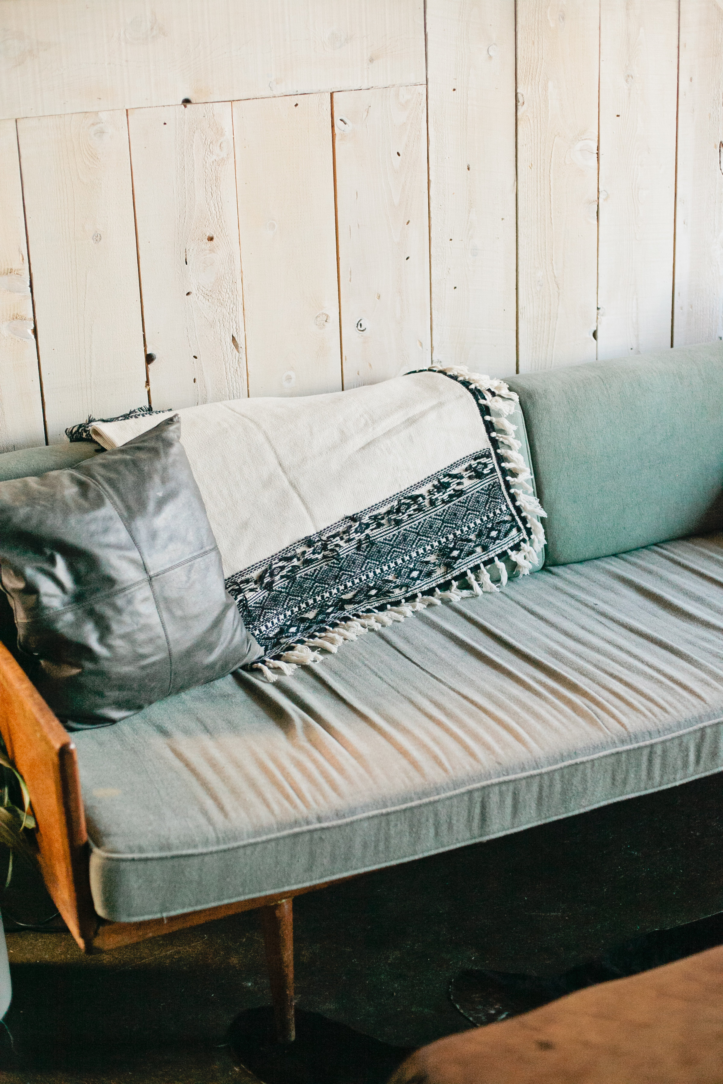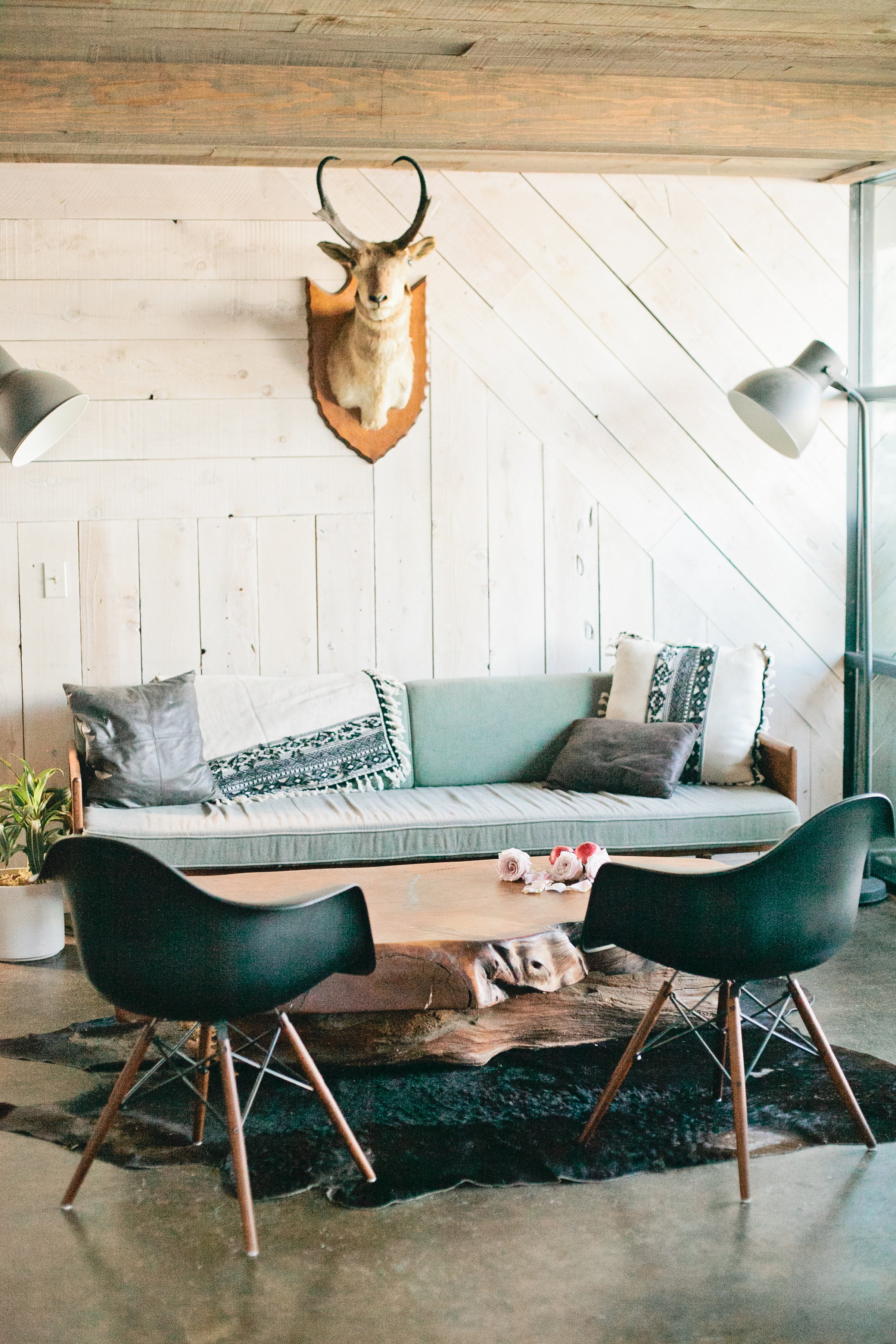 First place for getting cozy, on the couch of course! Leah styled her set in this extremely cozy spot, taxidermy and all! Add in some leather pillows to mix it up a bit and we think this look has a real cozy and modern feel. Makes me want to jump on that couch and turn on Netflix and call it a day!