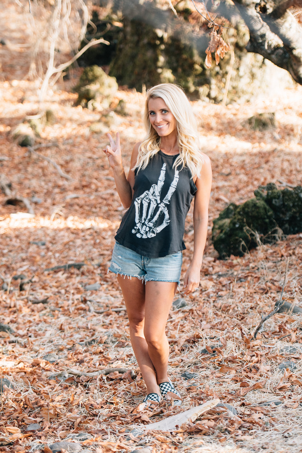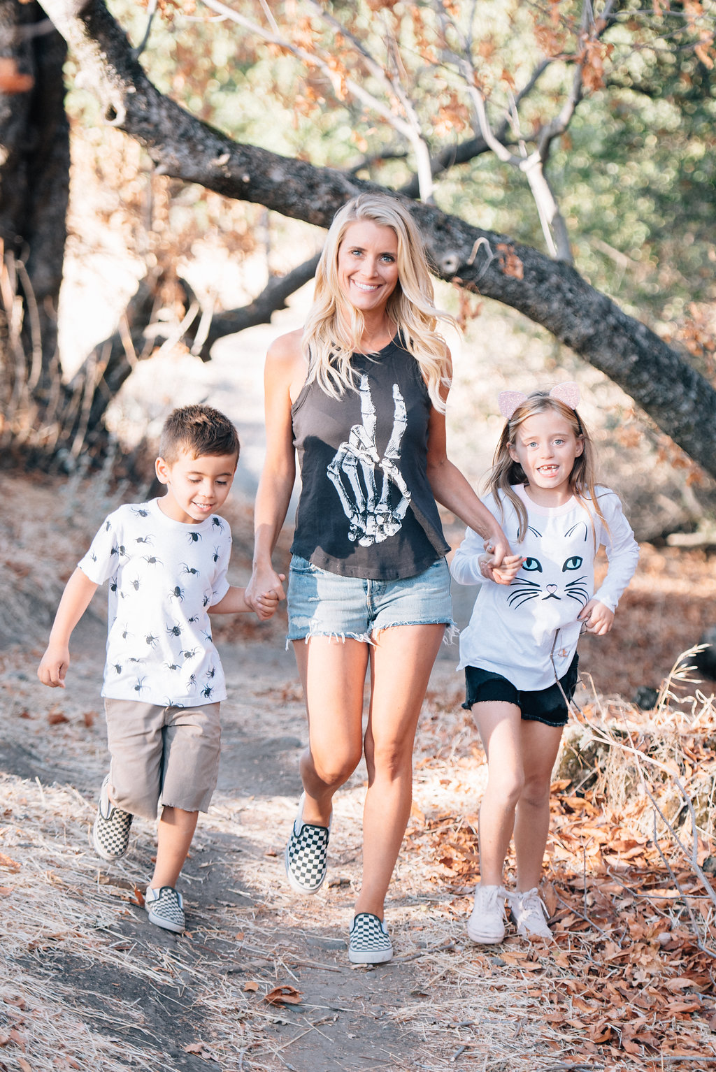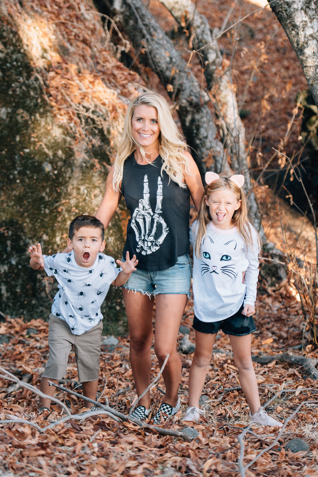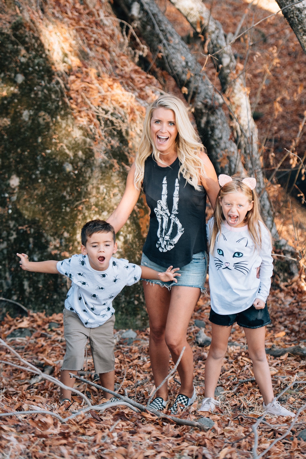 Here’s Abby and her littles and they’re all set for some tricks & treats!! Abby is wearing the Skeletal Peace Tank, Jett is wearing the Spider Attack tee and Dylan is wearing the Kitty tee.