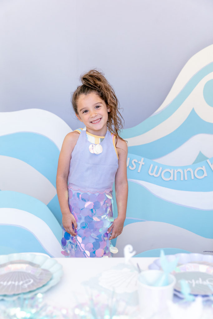 And here’s the birthday girl herself!!! Sophia is such a sweet girl and was so excited for her party!! Look a her in this adorable Meri Meri Mermaid Costume!! So much cuteness!!! Also LOVE that Meri Meri has costumes now to go with their party-ware – GENIUS!!