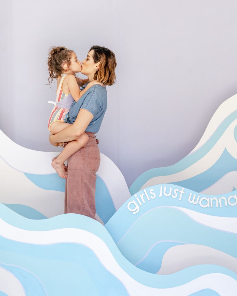 Here she is with her mama in front of that amazing installation! I didn’t have anything to do with building this beauty but I will say that I came up with the cute saying – Girls Just Wanna Have Sun!!