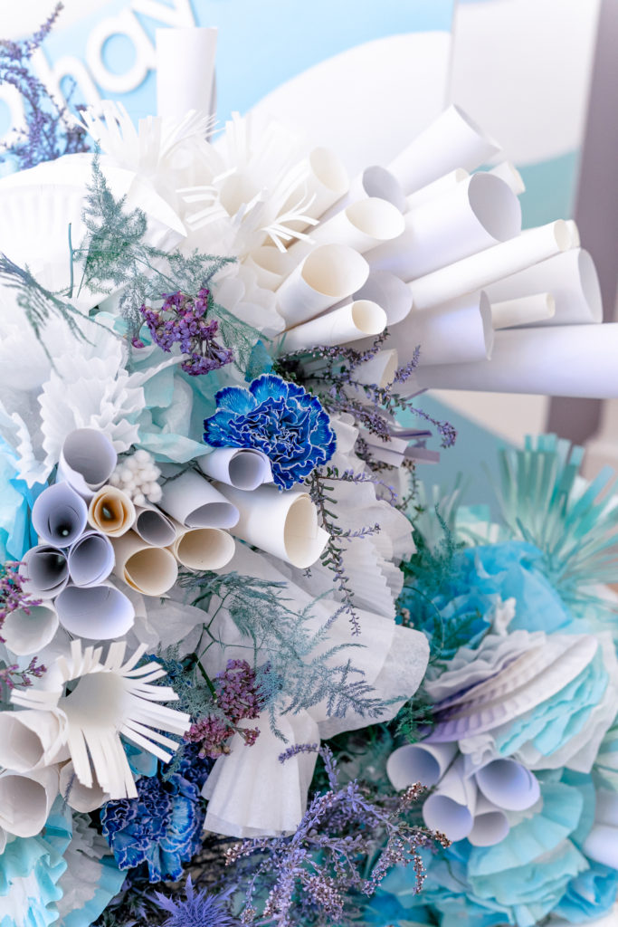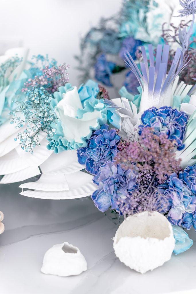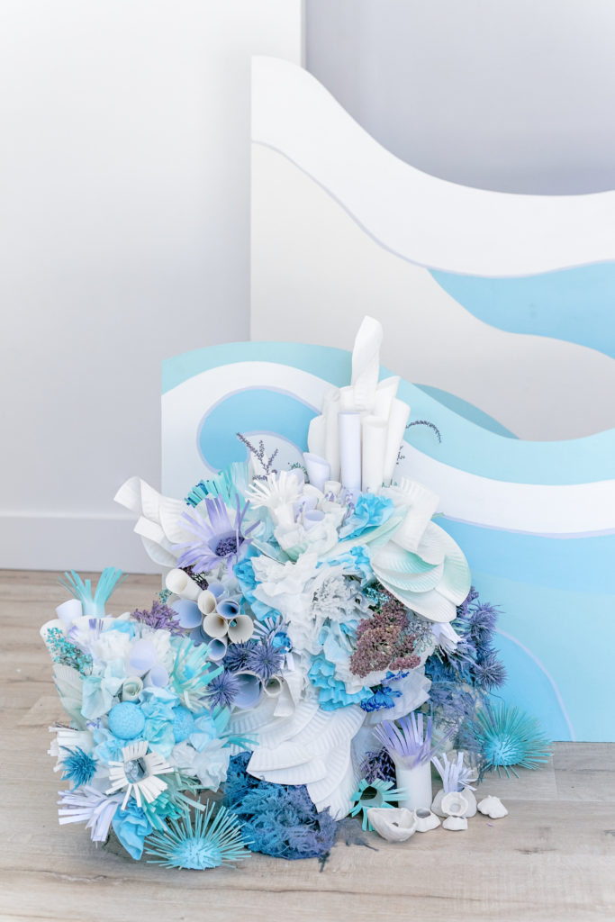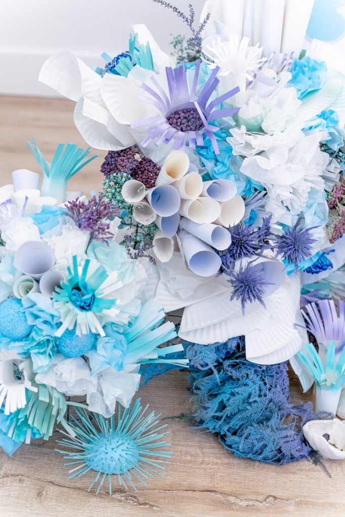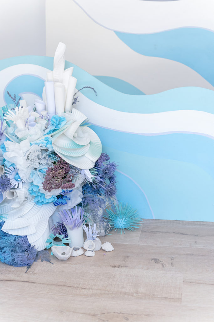 You may have seen this guy peaking in through-out the photos so far. Alexis and her team created these pieces with all sorts of materials like paper plates, coffee filters, toilet paper rolls, and q-tips to name a few. Mustard Seed Floral added her touch and voila, beautiful coral was recreated for this amazing party! I mean the talent to go into this was just insane!!