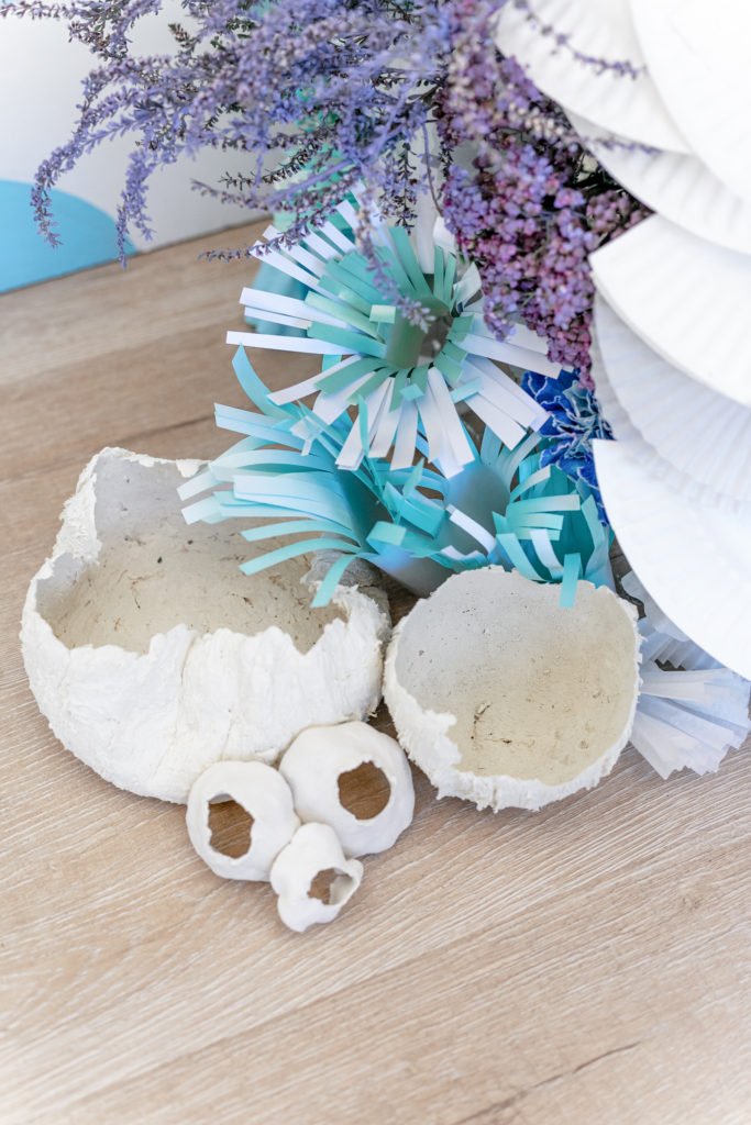 Nope, those aren’t real shells, those are all hand made by The Shift Creative with paper mâché!!