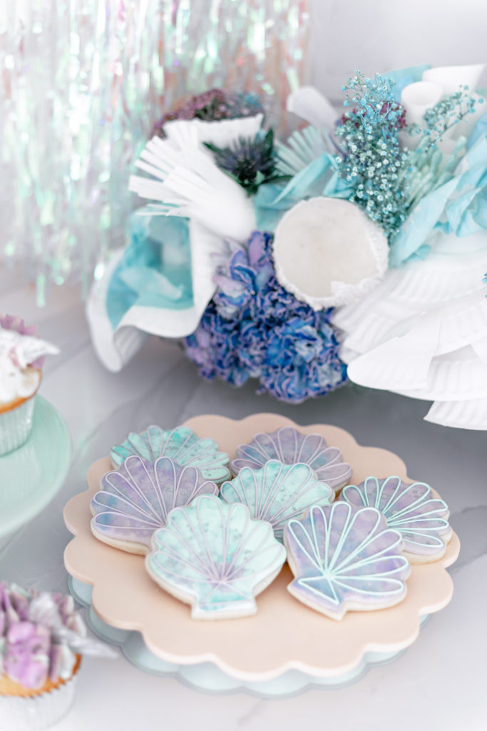 The desserts were amazing!! The cake and cupcakes were all done by the talented Sugar Crush Sweets. The cake was absolute perfection, I mean I’ve never seen a cuter mermaid inspired cake!! It sat well along with cupcakes and cookies!! The cookies were from Cookies by Heather, SO much talent in one party, I can’t even really begin to say how lucky I am to work along side these ladies and call them my friends!