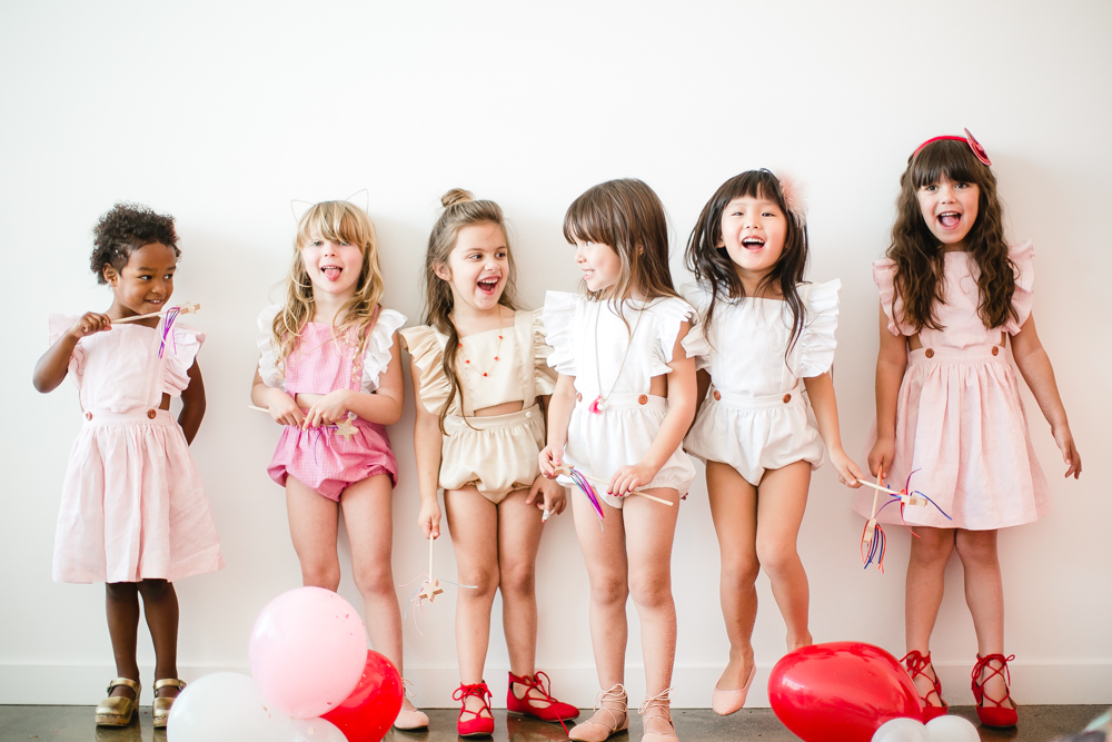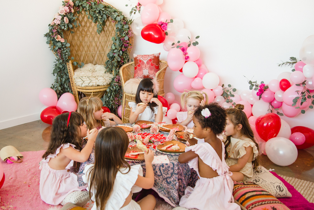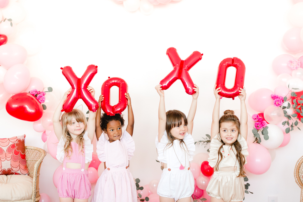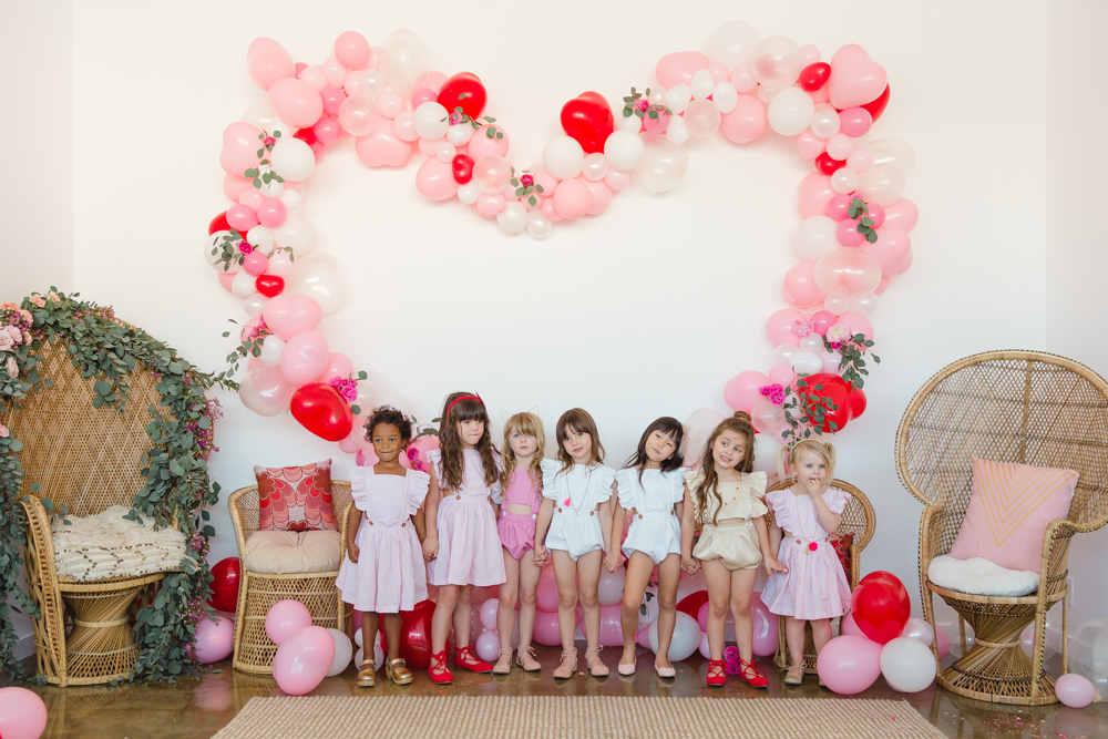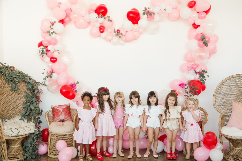 You know we couldn’t let a holiday go by without throwing a par-tayyyyyyy!!! Valentine’s Day deserves lots of love and that’s what this girly Galentine playdate is about! I gathered up the ultimate girl squad for this shoot and the cuteness enthused. The best part was that all of these girls had the best time together and it was so fun watching them play!