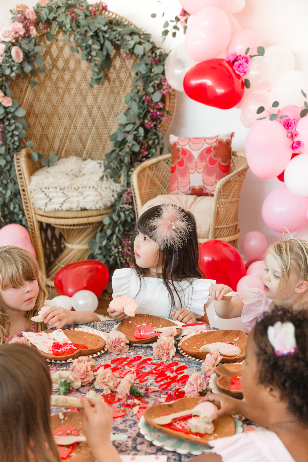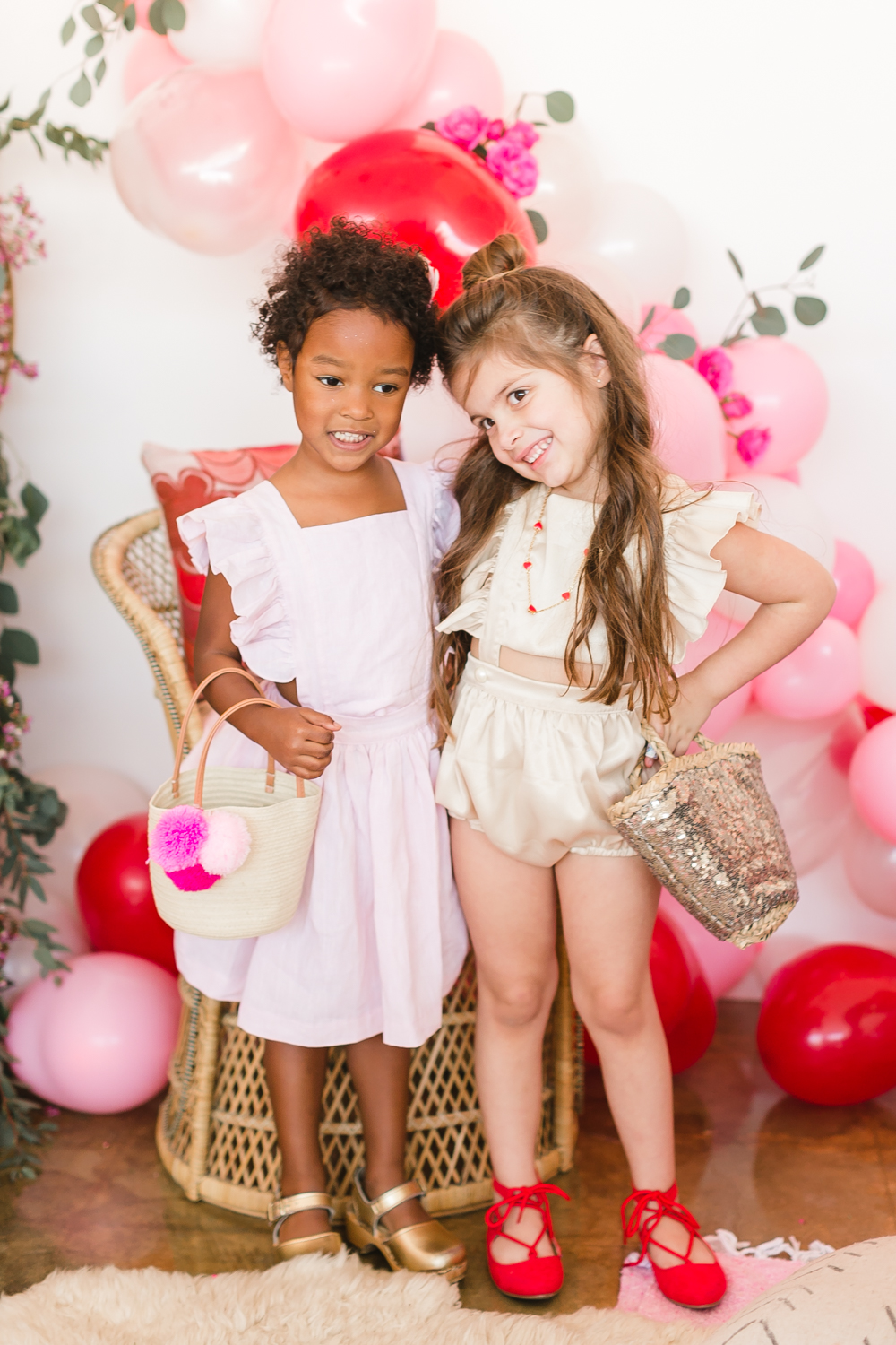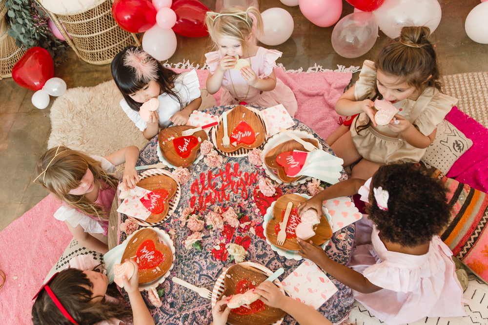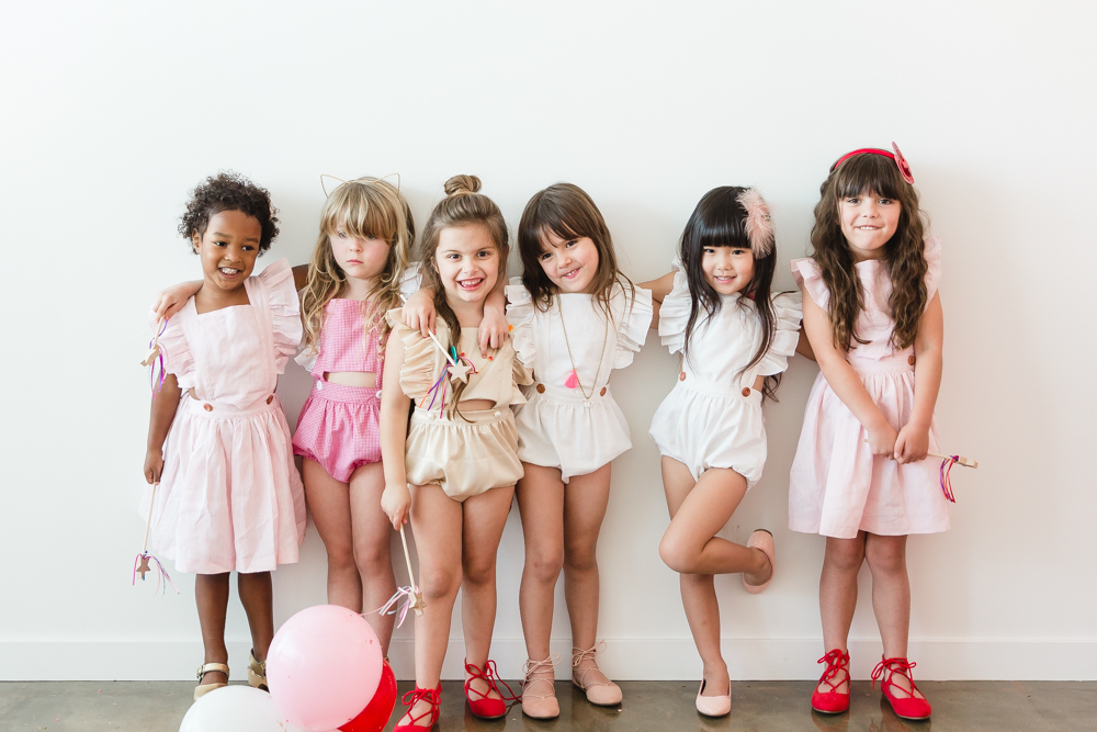 You know we couldn’t let a holiday go by without throwing a par-tayyyyyyy!!! Valentine’s Day deserves lots of love and that’s what this girly Galentine playdate is about! I gathered up the ultimate girl squad for this shoot and the cuteness enthused. The best part was that all of these girls had the best time together and it was so fun watching them play!