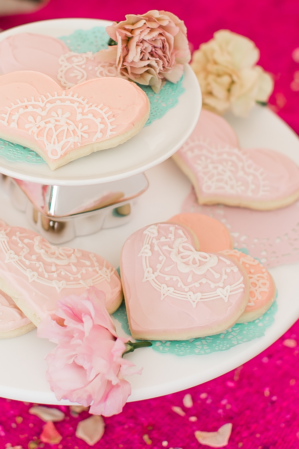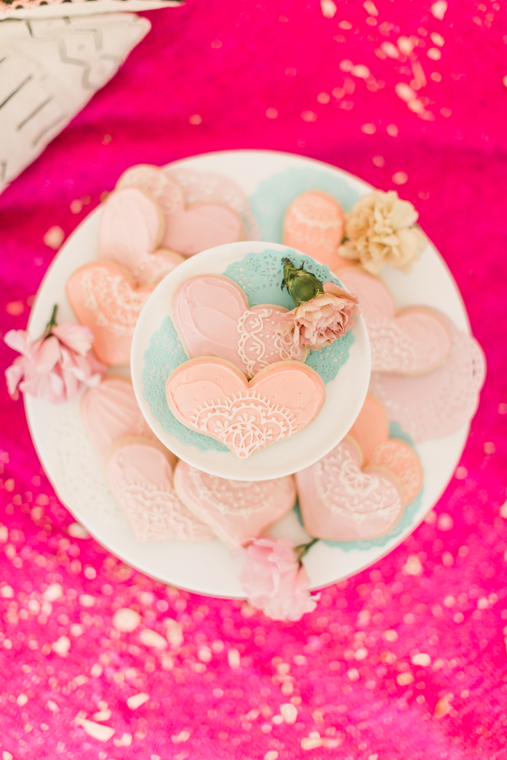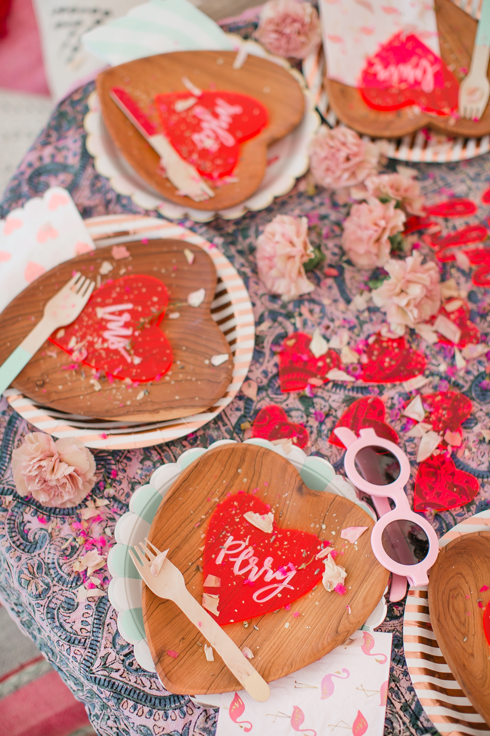 Meghann Miniello created the sweetest invite that would make any heart flutter… I carried on the cute acrylic heart theme to the table as well. Playing with all of this pink was way too fun!! We threw floral confetti by The Confetti Bar around and the girls had the best time doing it!