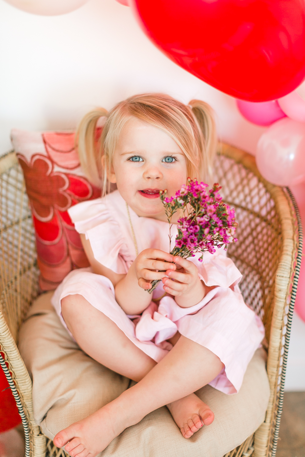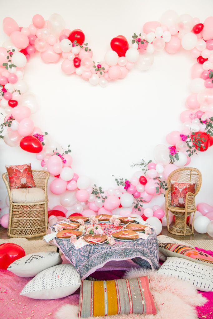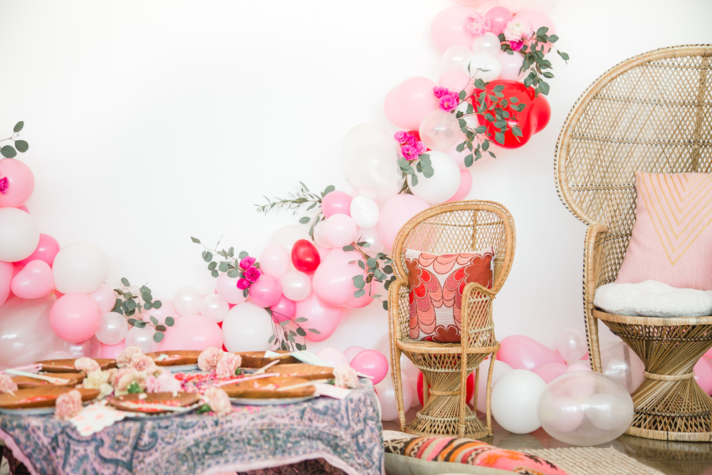 Now are you ready for the ultimate girliest playdate you’ve ever seen?? Because I don’t know if you can handle the cuteness… Let’s start with the amazing balloon install from Wild Child Party complimented by the beautiful flowers by Of the Flowers and the gorgeous rentals from 6th and Detroit… Giving me all the Valentine’s feels…