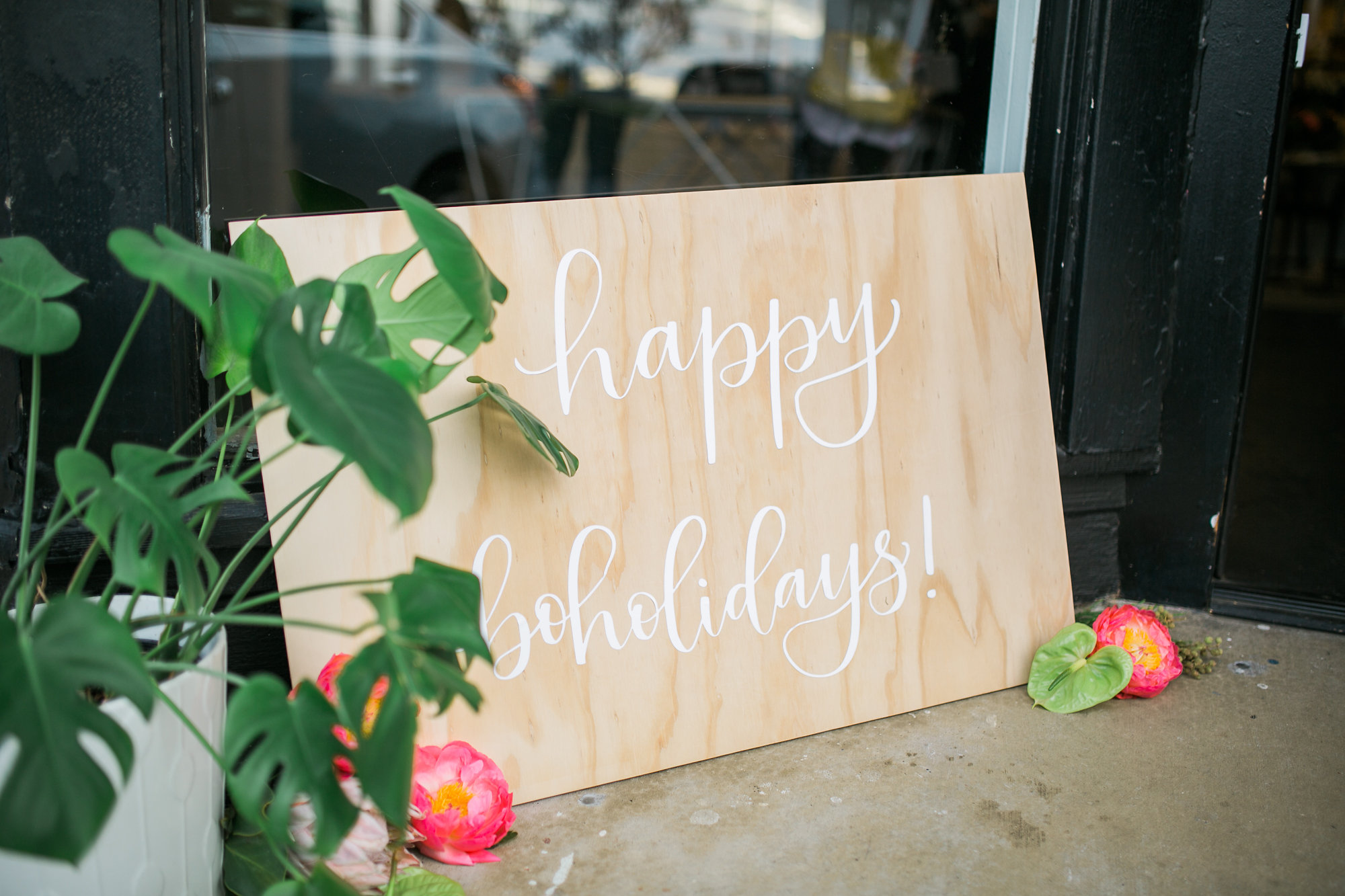 Every year we get the chance to design and style the Boholiday Party with our friends Julia owner of Gunn & Swain and Lisa owner of St Eve Jewelry, and each year it gets better! This was our 3rd annual event and by now these girls have become close friends and it’s even more fun!! All of us ladies have kids at this point and we thought it would be fun to change it up a bit and have the party be more of a family affair! We also went a bit different than the average holiday party and had a tropical vibe with a little glitz added…. Keep reading to see how the 2016 Boholiday party went down and all the amazing vendors that made it happen! And if you are into really rad free stuff, scroll all the way to the end so you can see about our giveaway!!