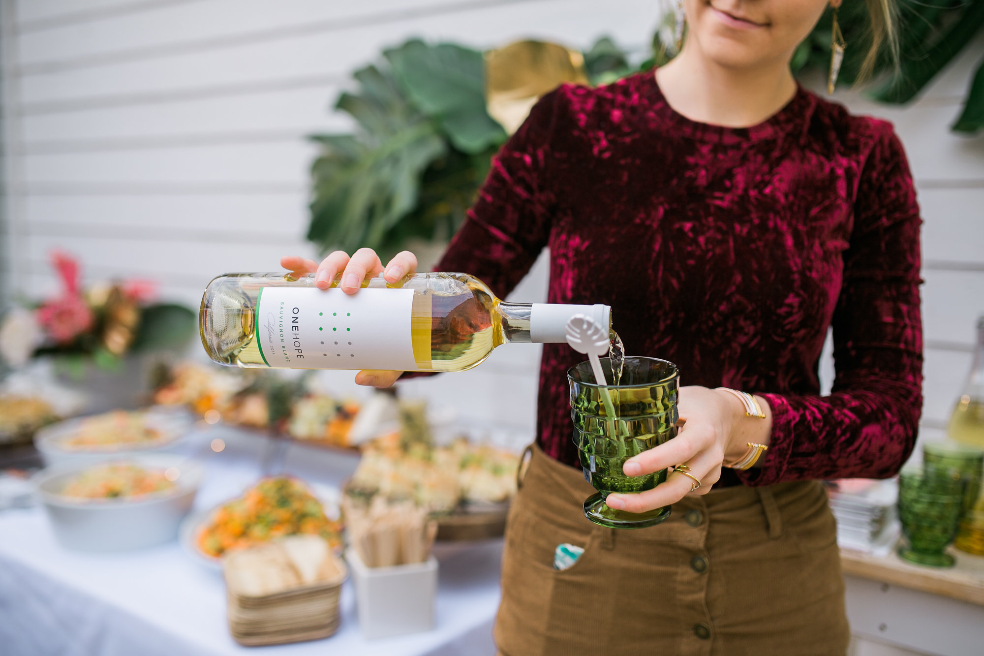 Our bar set up was adorned with gorgeous vintage glassware collected by our beautiful friend Lisa and One Hope wine and champagne was flowing!!! It made for a very happy event ;)
