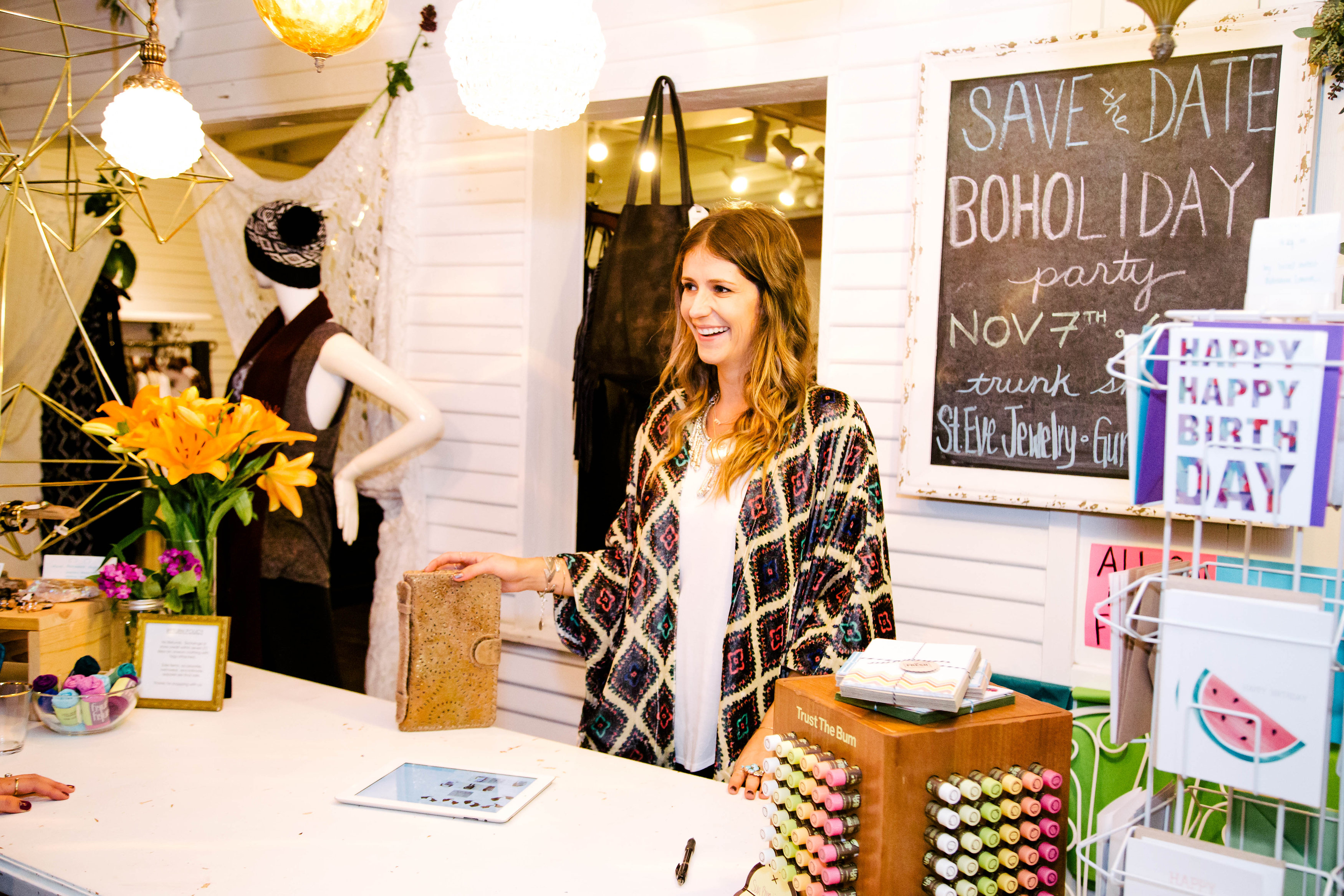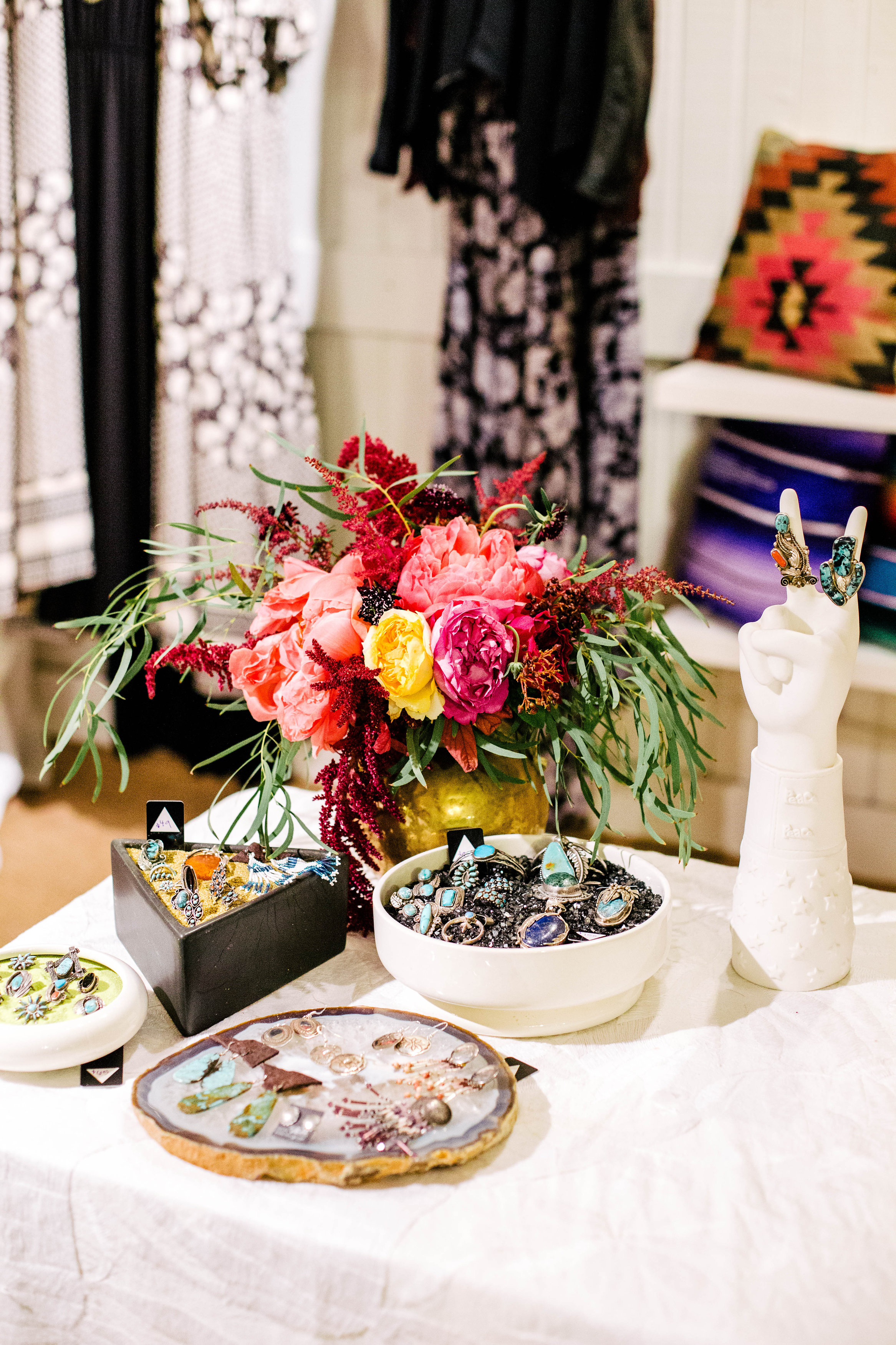 We are huge fans of Gunn & Swain and St Eve Jewelry so when they asked us to be a part of this, we jumped at the chance!! The party took place at The Hidden Jewel Boutique in Costa Mesa, CA which is already such a cute spot, it didn’t take much to make it look amazing… Just a few little touches, which we took care of! It was a beautiful gathering of bloggers, fashionistas, and friends to celebrate the holiday season, shop and drink some bubbly!