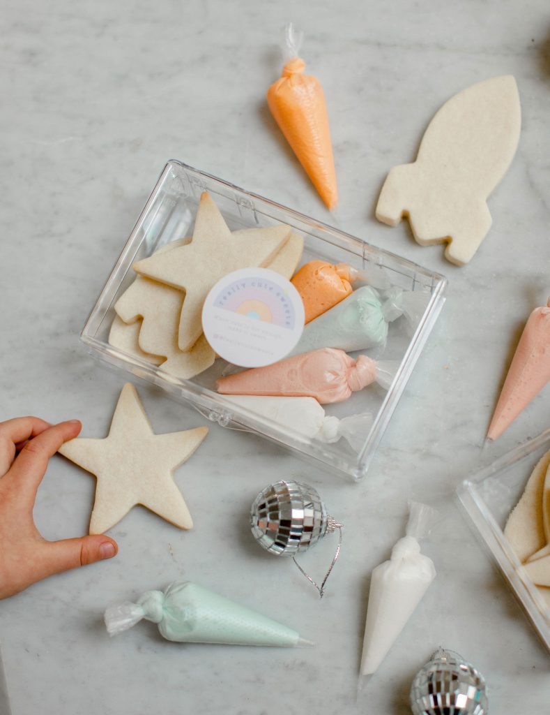 Now for our desserts, which also serve as our party’s activity or craft! I had Really Cute Sweets do her amazing cookie kits in our theme and placed them on the table. This is a perfect way to keep the kiddos busy at the party while also giving them a yummy dessert!! Kids of all ages love to bake/decorate cookies so having a handy dandy kit like this is so amazing!! Plus, don’t they look cute on the table?!