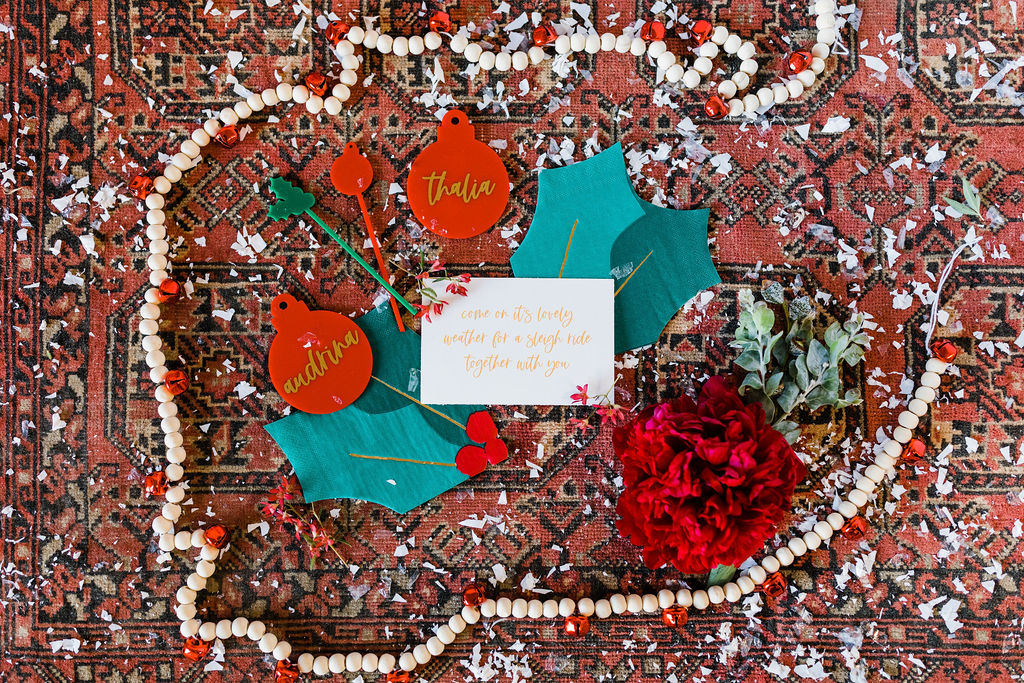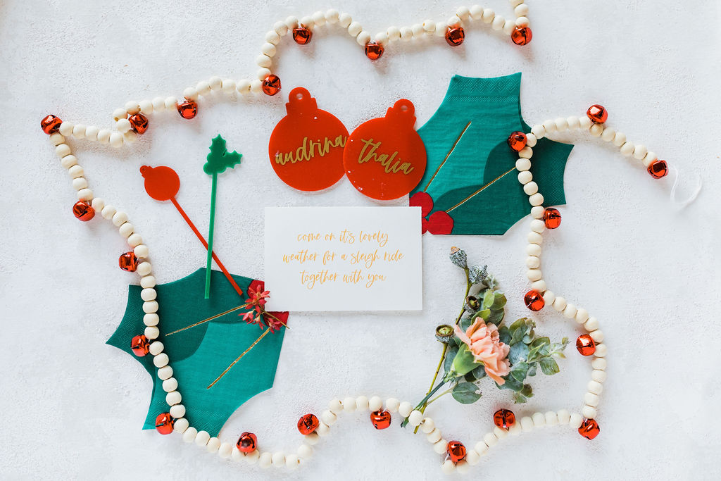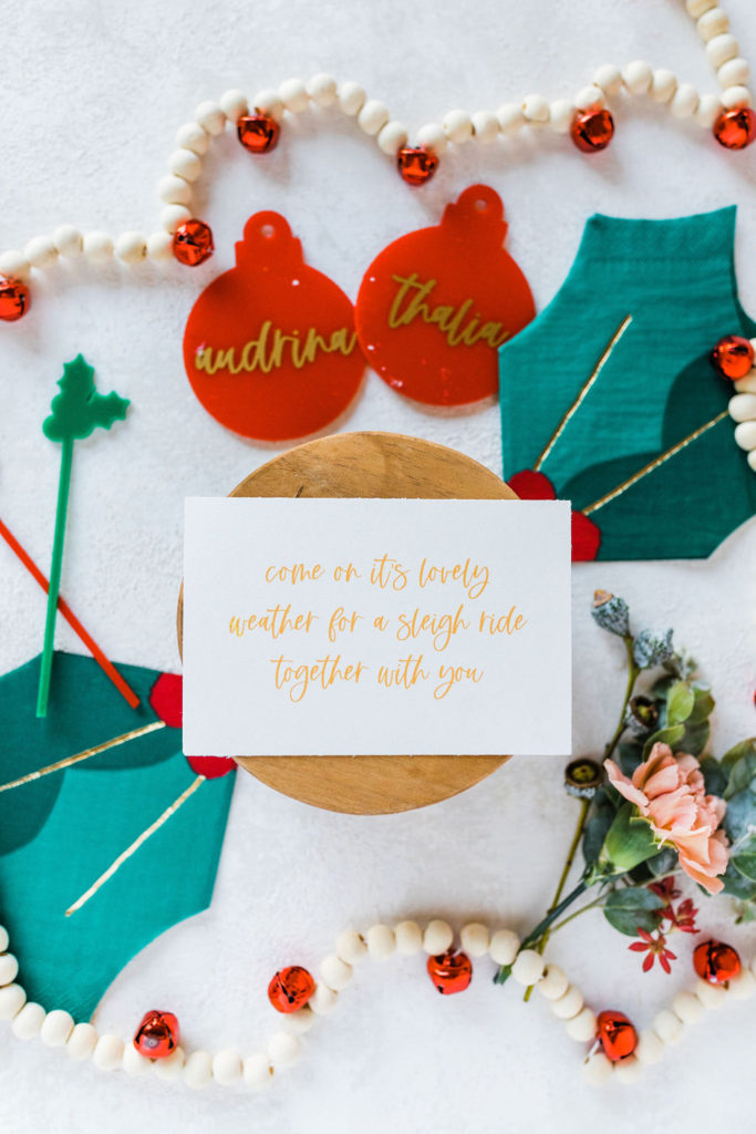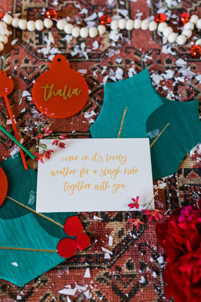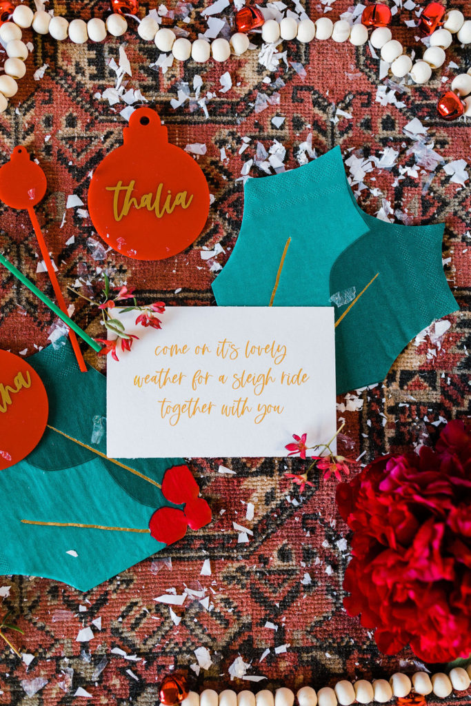 Details, details, details!! A classic note from a nostalgic song to invite your friends for a holiday party. Plus all the adorable details you could ever want! All by our lovely friend Leanna of David & Leanna. And I’m obsessed with those cute holly berry napkins that are part of our tabletop, just wait!!