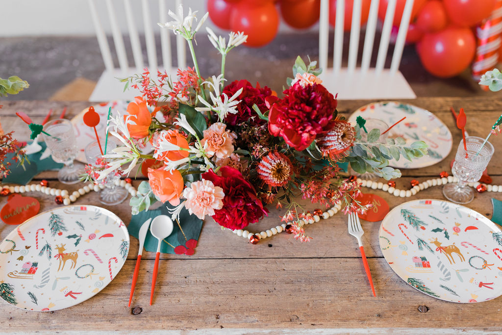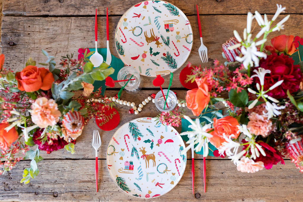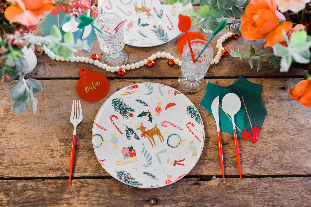 This tabletop situation is one of my favorites!! Meri Meri never disappoints when it comes to tableware and lucky me that Bonjour Fete carries their latest holiday collection! I paired it with Sophistiplate’s red Bella flatware and vintage glassware, for that nostalgic touch.