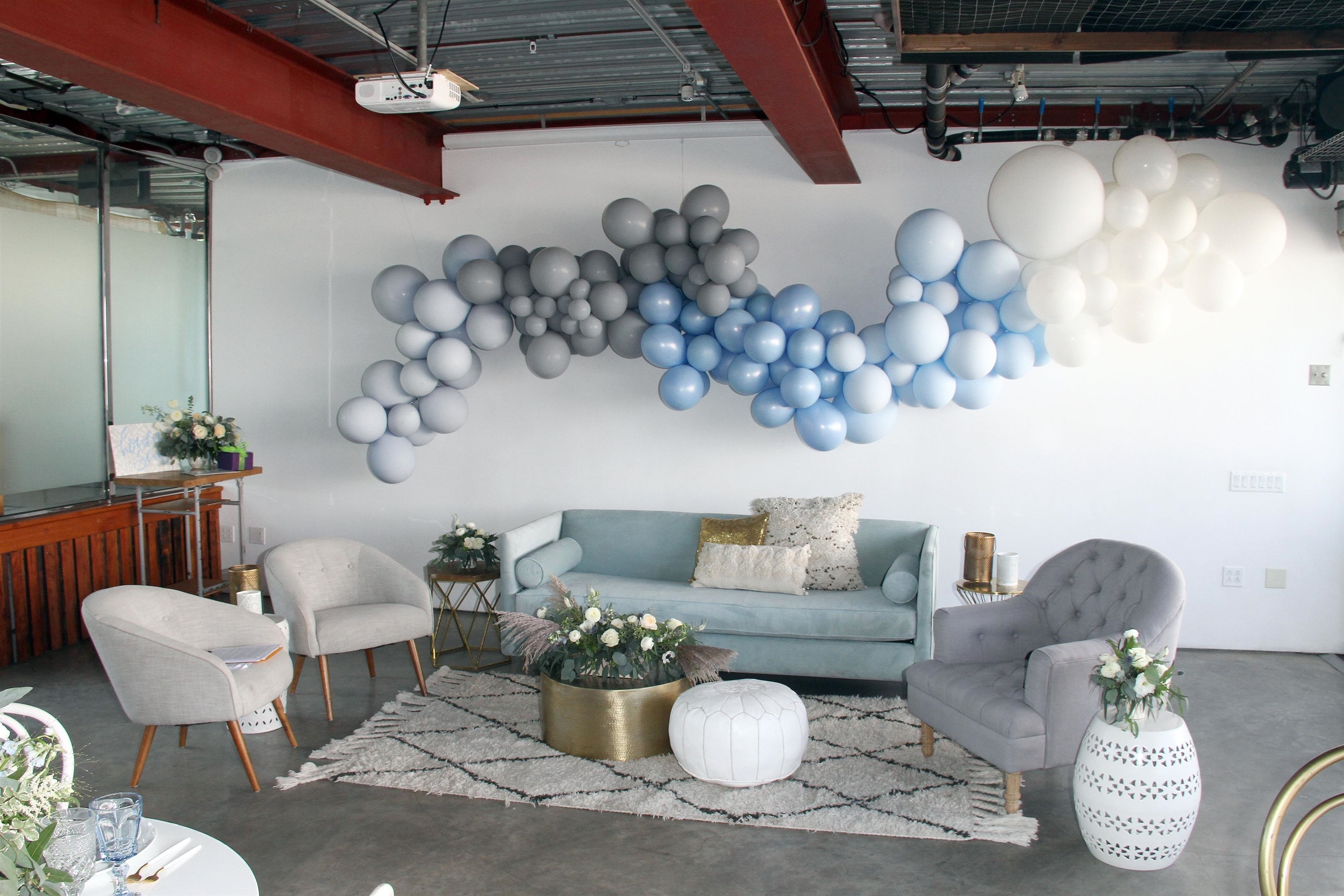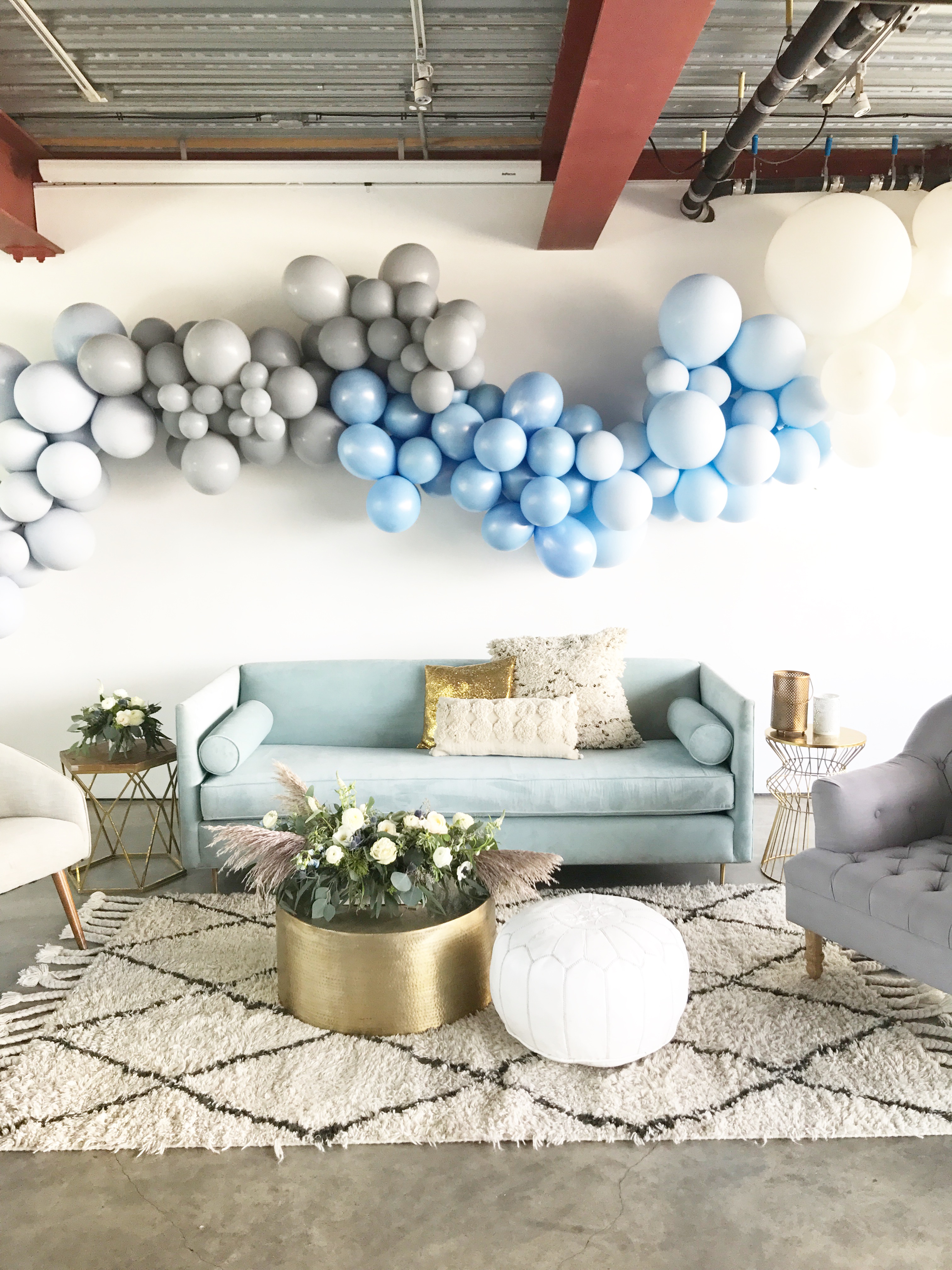 Adore Folklore brought all the pretty rentals, they seriously transformed the entire space! Wild Child Party did the amazing balloon installation, of course! And our friend MV Florals did the beautiful floral arrangements. I stuck with that ethereal vibe through the colors and florals, and I really love how it turned out!