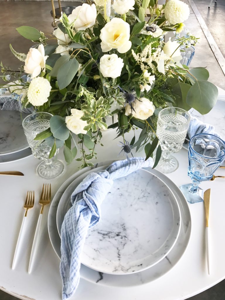 All of the tabletop is from Borrowed Blu, their marble collection is so insane, I have been dying to play with it!! All of their pretties pair so well with MV Florals arrangements, right?