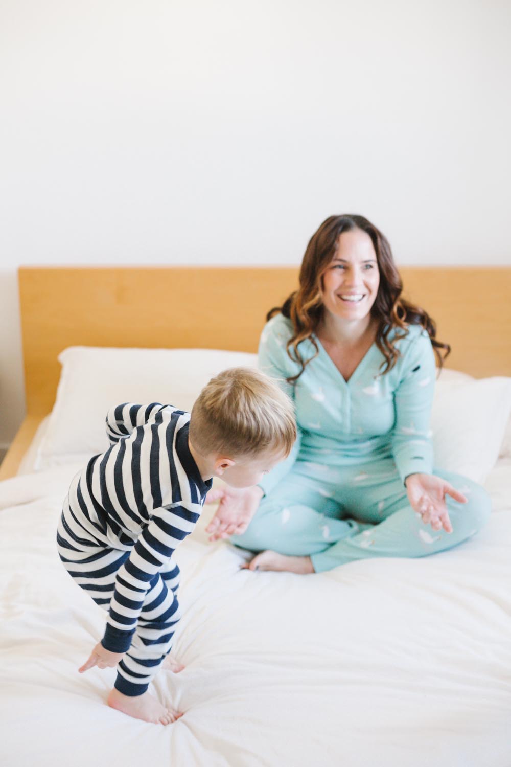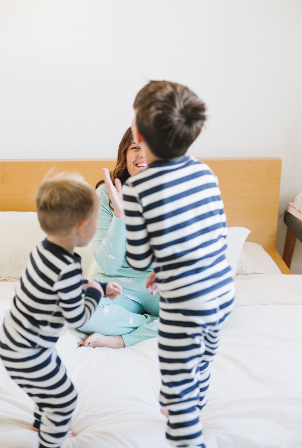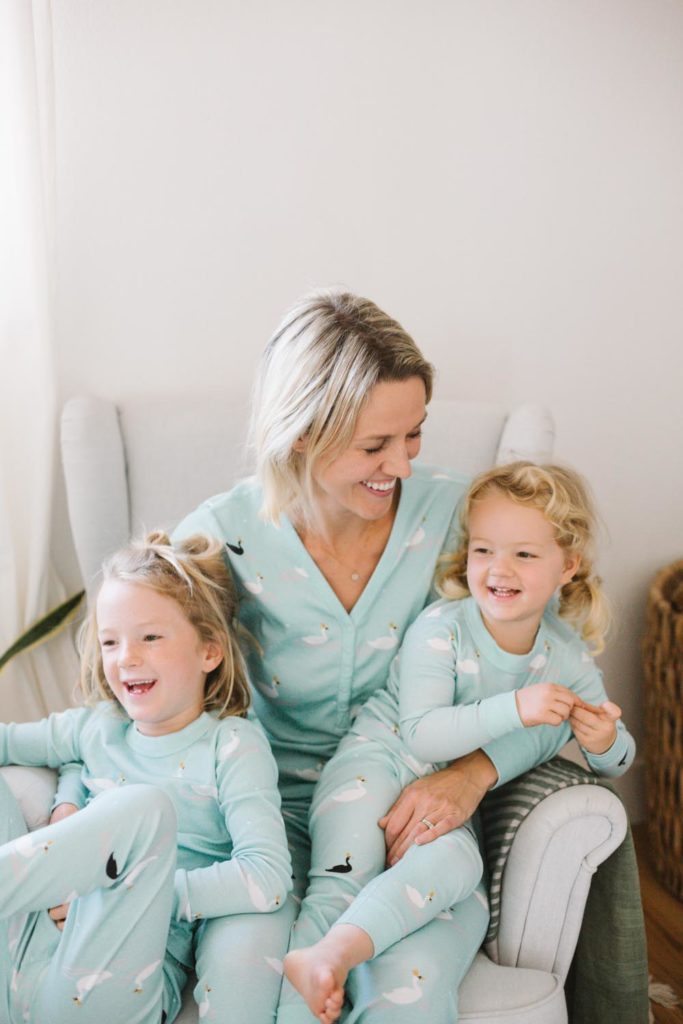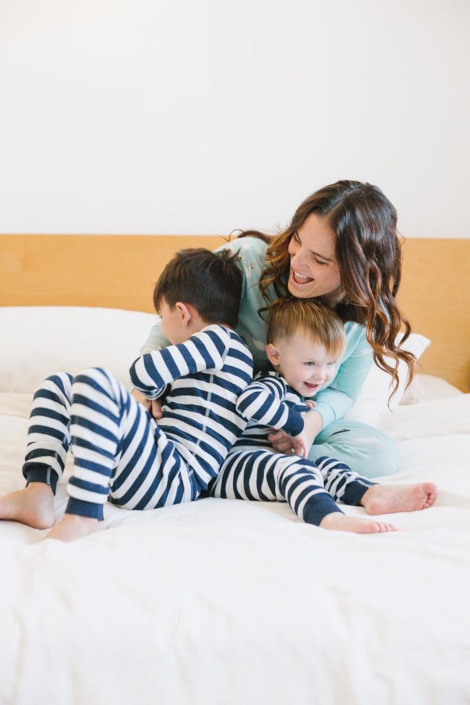 After the cookie making madness and the sugar rush, we had to get the sillies out!!! There was some wrestling, some bed jumping and of course some cuddles!! All in the best jammies ever from Hanna Andersson!!! And you better believe us moms took advantage of the pajama party attire too!!