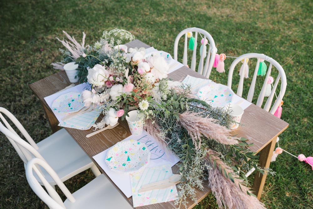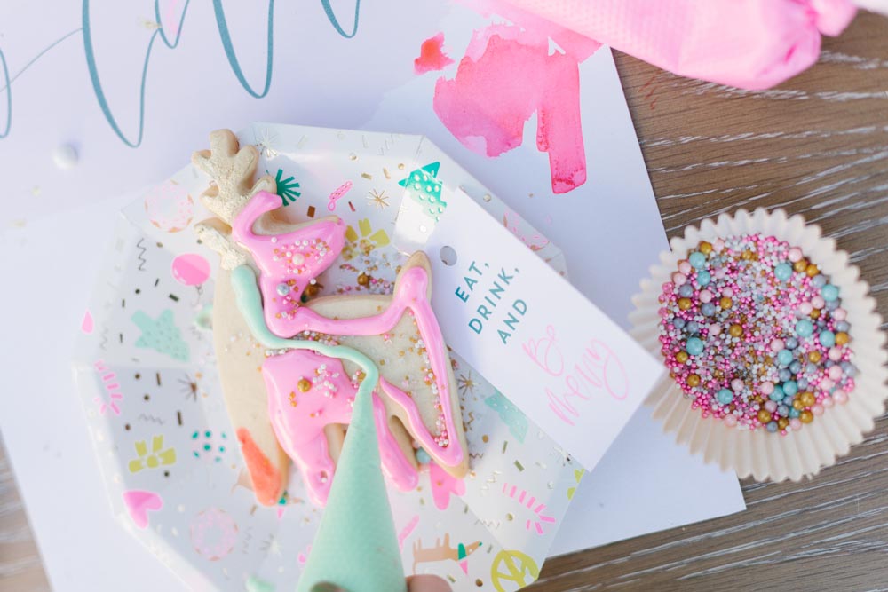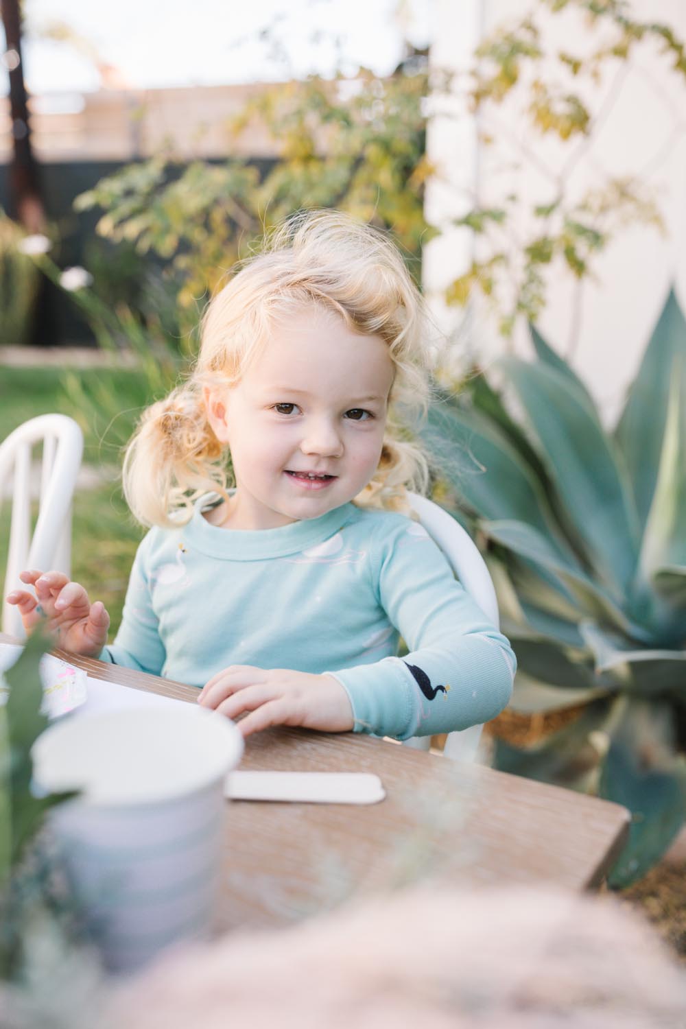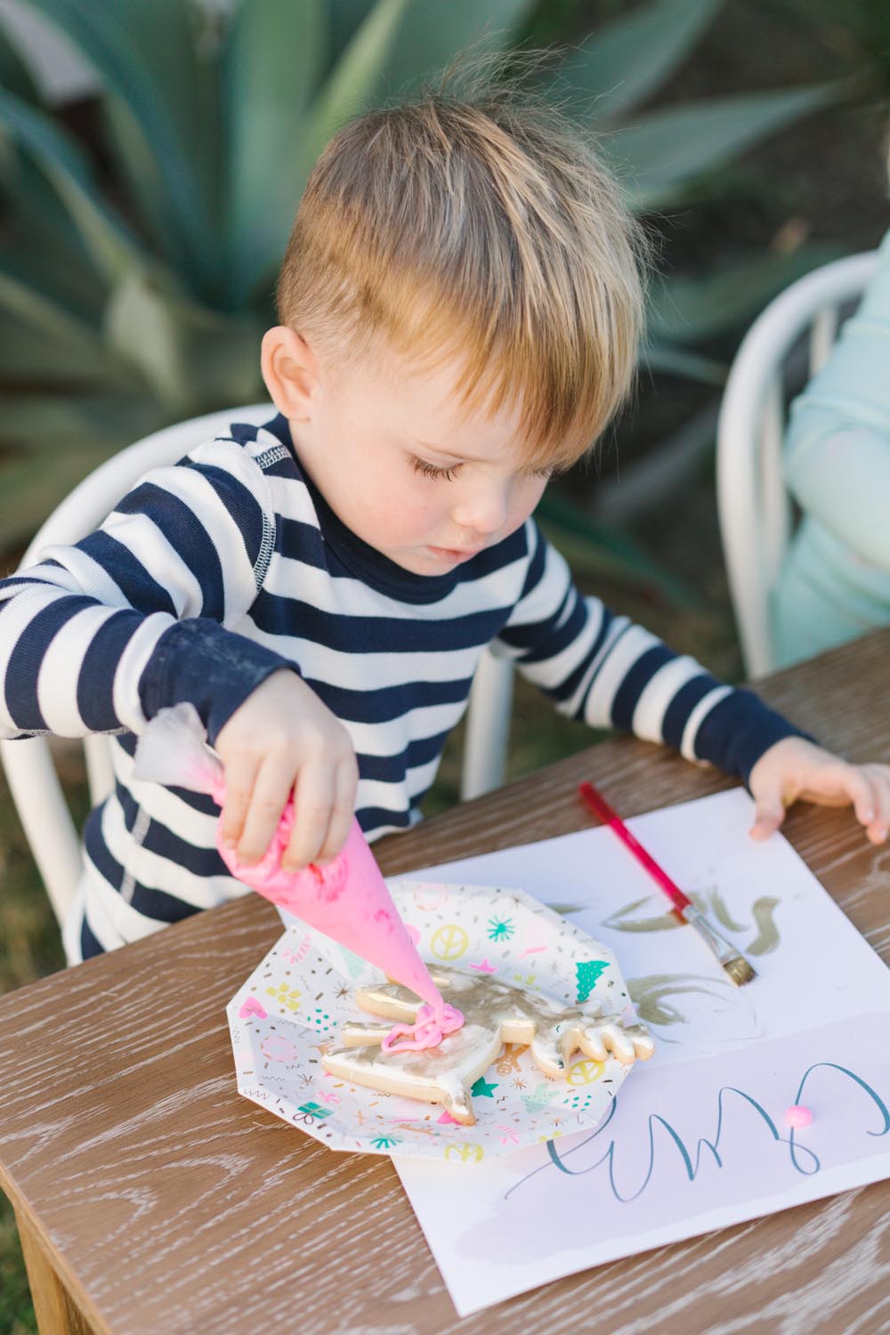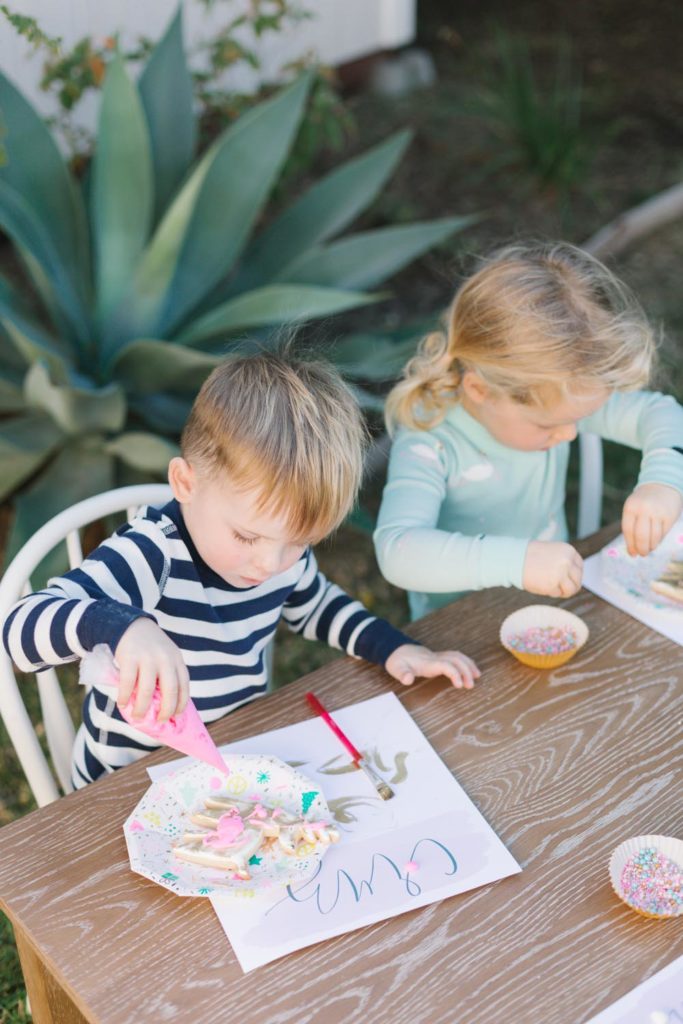 The table was set outside – and let me tell you why… When you live in Southern California and it’s 75 degrees, you take advantage of it! Haha! Cookie decorating can get messy, so an outside mess is always better than an inside mess, can I get an amen from all my other mommies out there?!