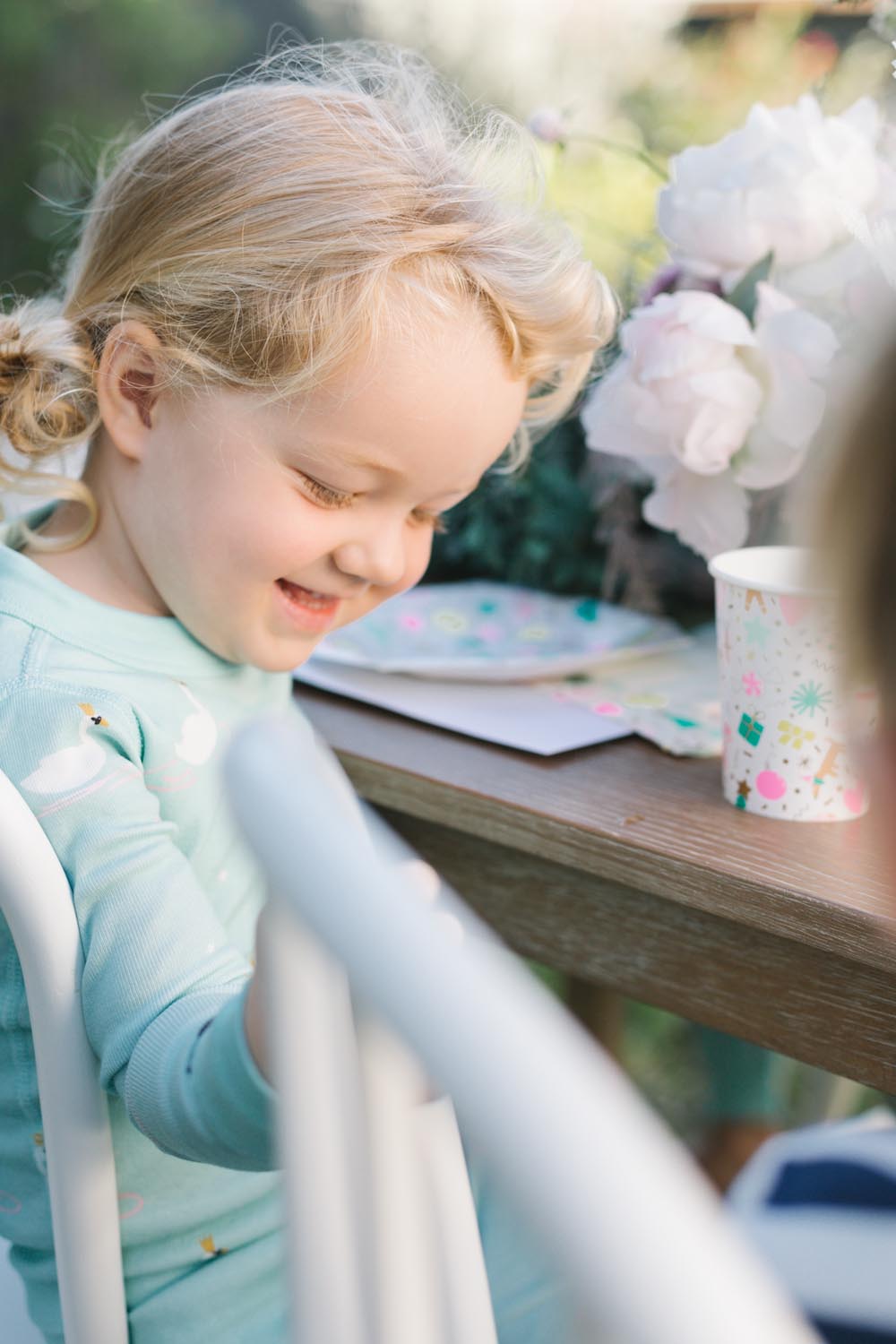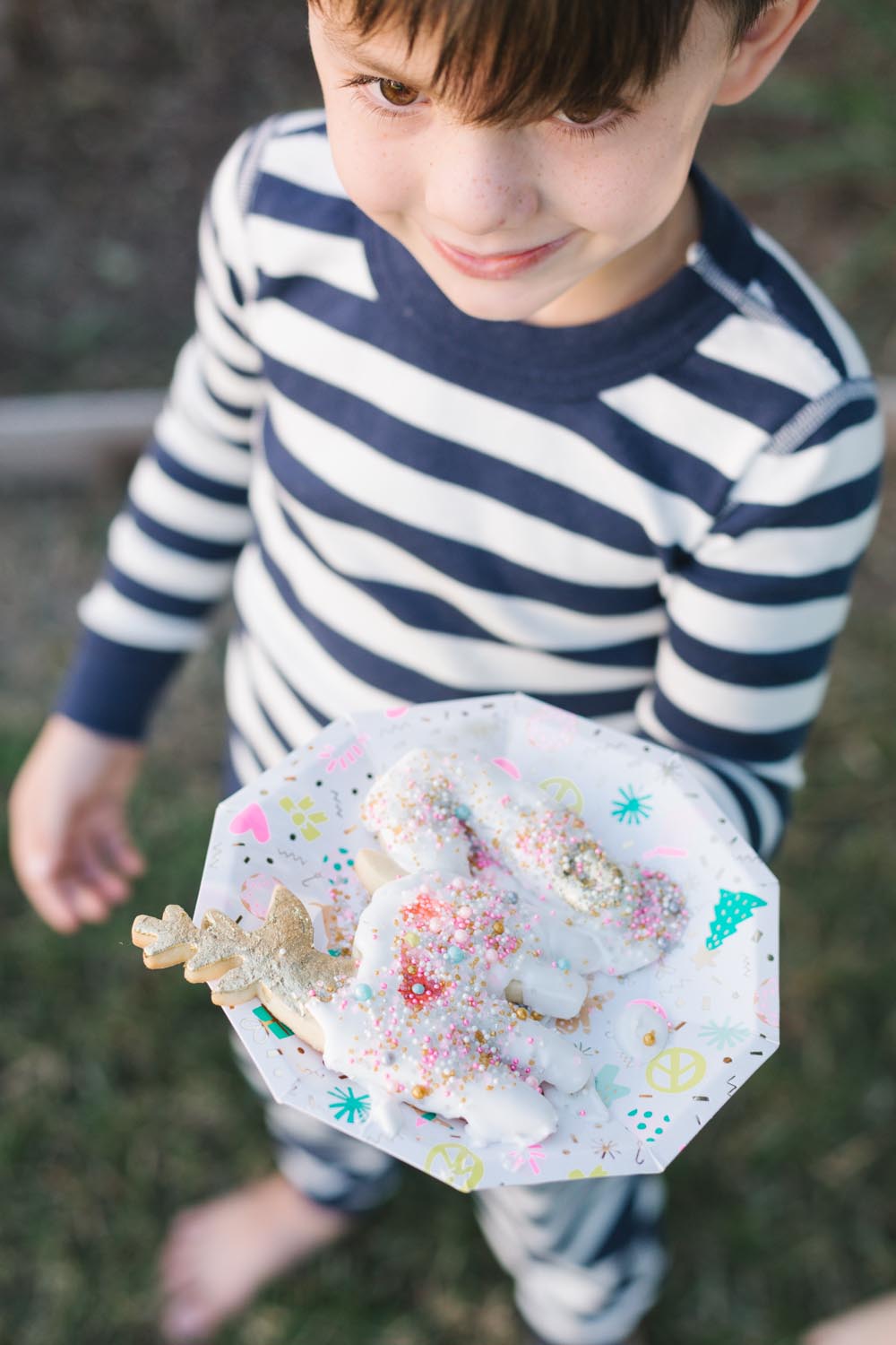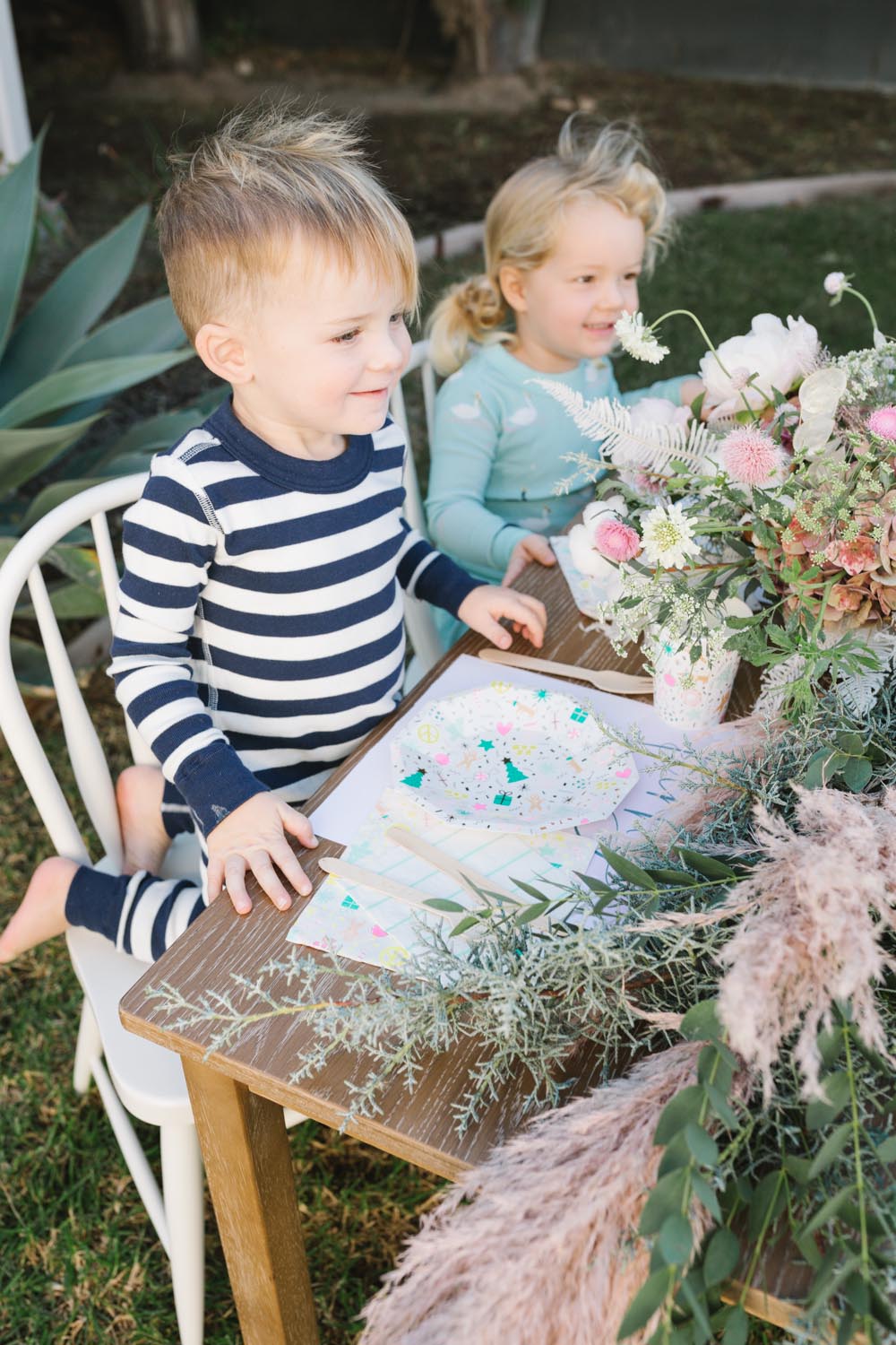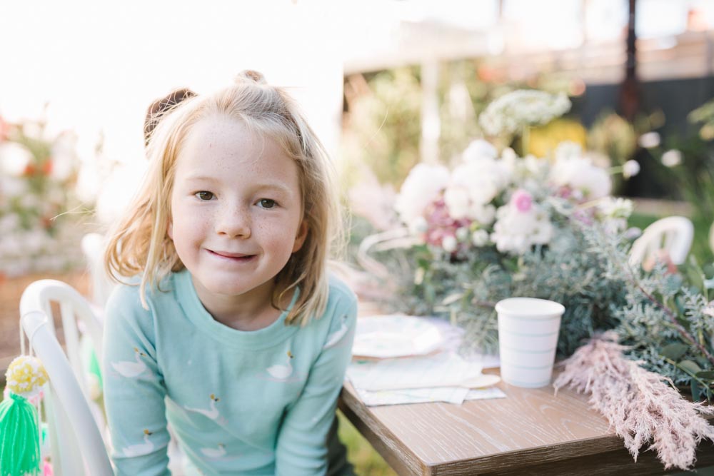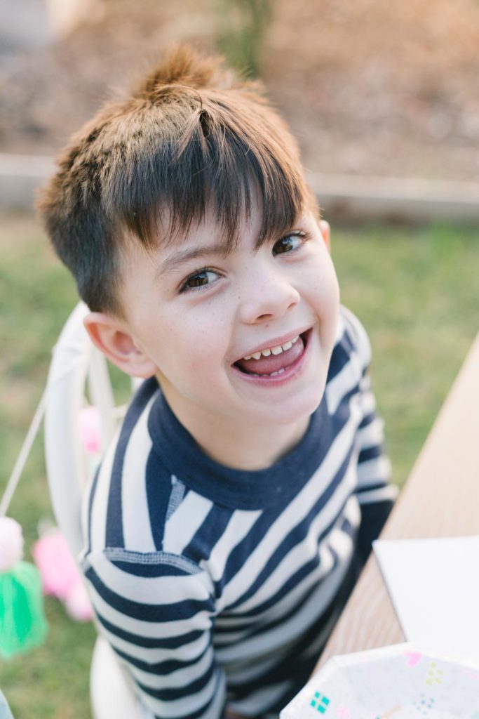 The table was set outside – and let me tell you why… When you live in Southern California and it’s 75 degrees, you take advantage of it! Haha! Cookie decorating can get messy, so an outside mess is always better than an inside mess, can I get an amen from all my other mommies out there?!