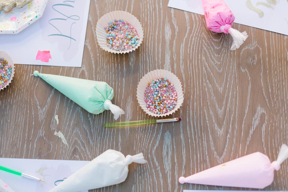 She comes with everything you need! Multiple frostings, a ton of sprinkles and even the paint and brushes to make them extra pretty!!