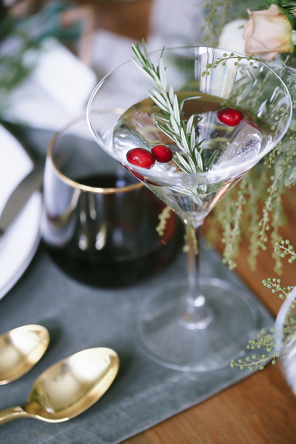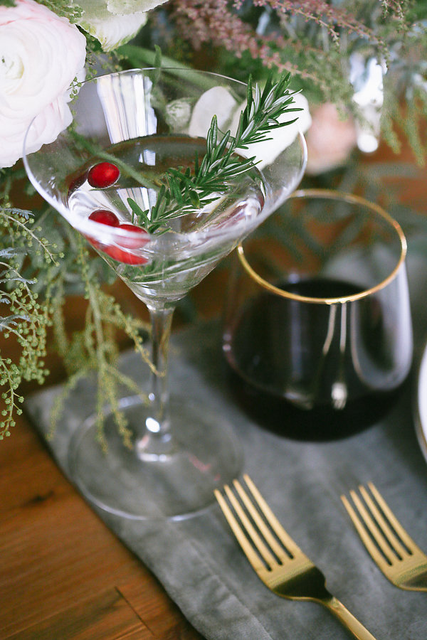 No holiday table is finished without glassware. To match the dinner plates, the Gold Rim stemless wine glasses were a must. We decided to shake things up and add a martini glass instead of a water goblet. I love the classic look of the Schott Zwiesel martini glass, and it adds height your place setting. I like the unexpected look of having the martini glass be the water goblet.