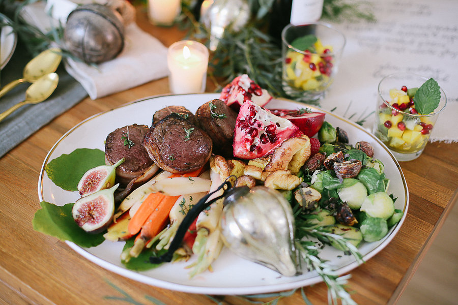 Organicopa made all this yummy food. Serve it up family style with the Gigi Gold Rim Platter. Add figs and pomegranates to give the platter some color.