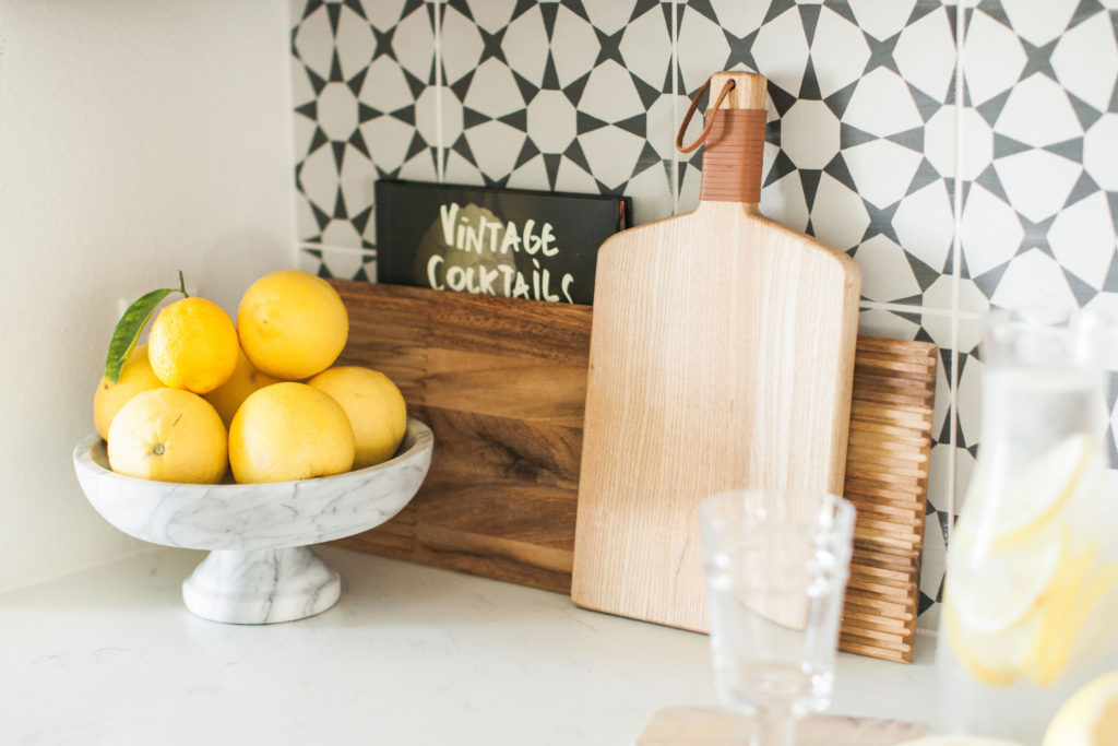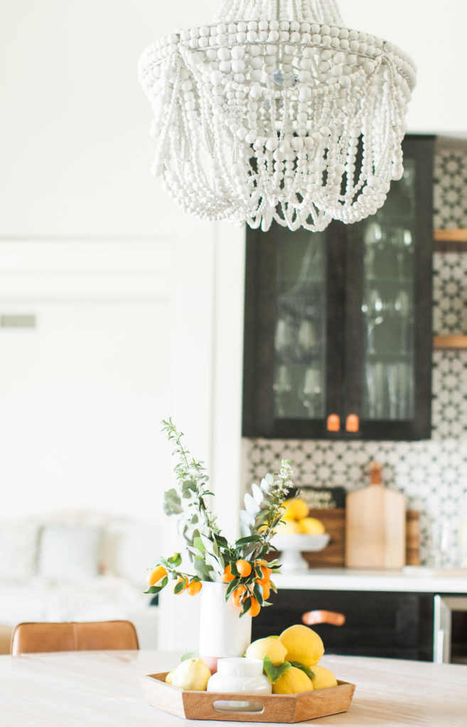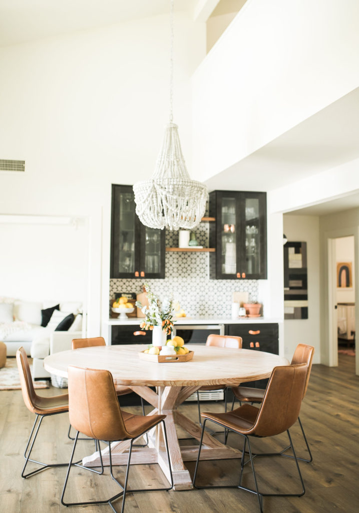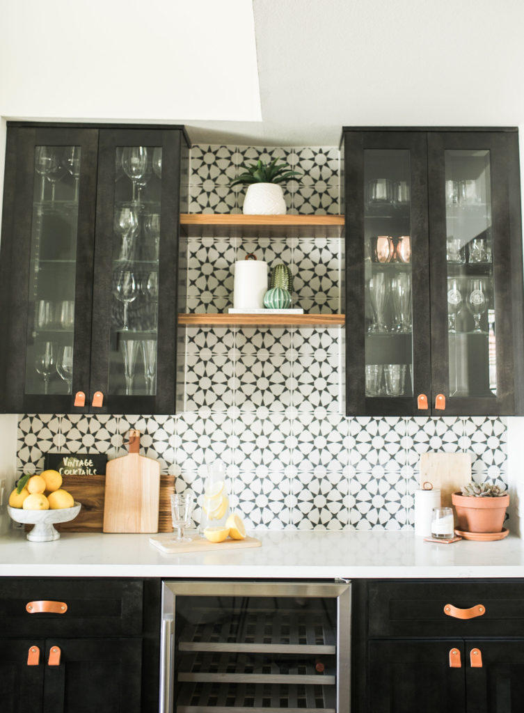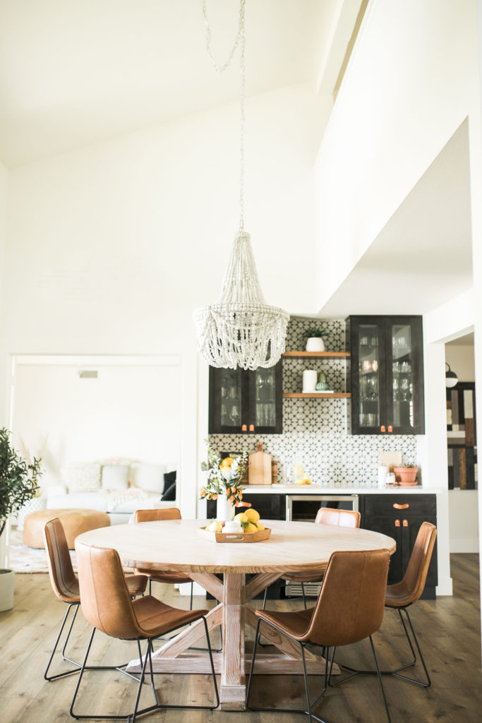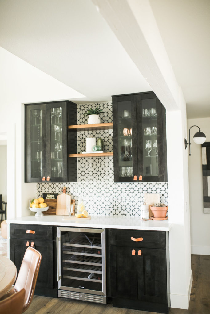 Thank you! It was such a fun space to design. I wanted something fun, but timeless that we wouldn’t get sick of. We love to entertain, so we knew we needed to design a bar area. Where the bar is, was just this random blank space that was very awkward off the dining room. It was perfect for a bar and a wow moment in the room. We decided to use the same tile we used in the den, because you can see the fireplace from the dining room. I just love how we can open the French doors off the dining table and have the indoor outdoor feeling. My design vibe for the house is modern boho farmhouse (I know it sounds crazy haha), and I think this room speaks to that very well.