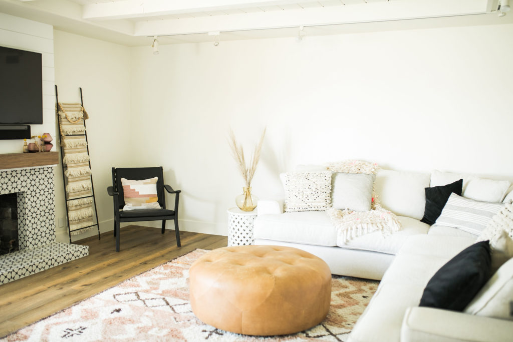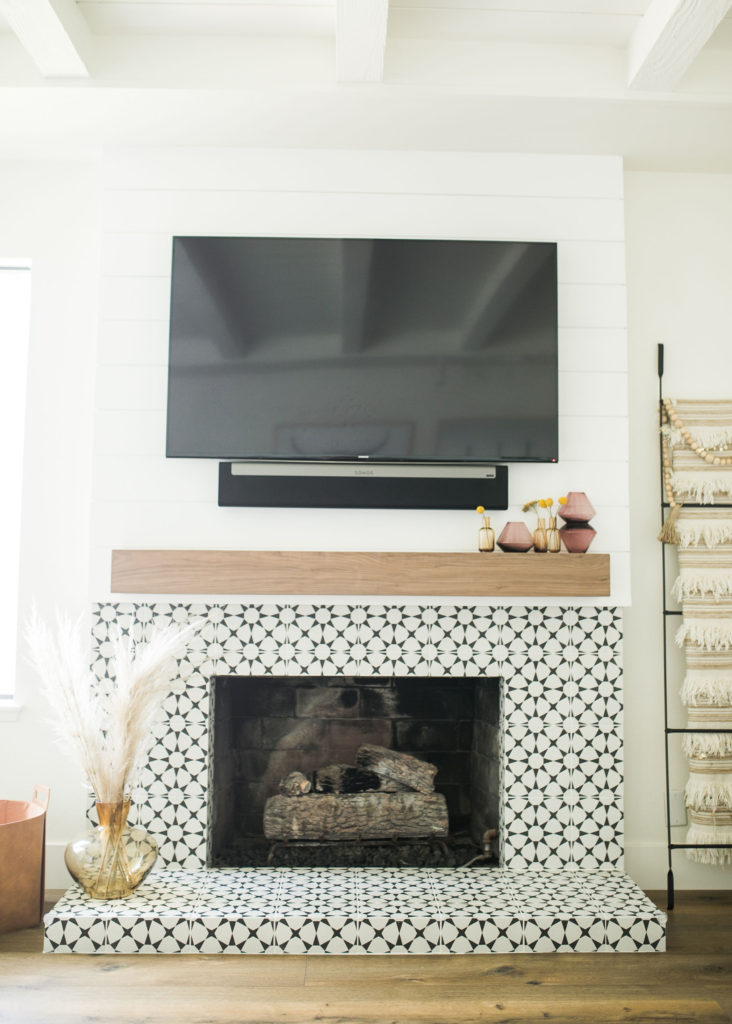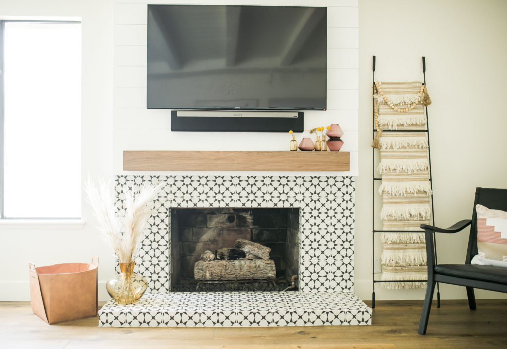 We moved in last August, so not even a year yet! Our first project was definitely the flooring we installed downstairs. The entire house was full of the awful tile that made the home feel very cold. We wanted our new home to feel warm and inviting, and knew the tile had to go. Then painting the entire inside white – there’s nothing like a fresh coat of white paint to brighten up your space. From there we redid the fireplace in the den, which was the first fun and creative projects in our house.