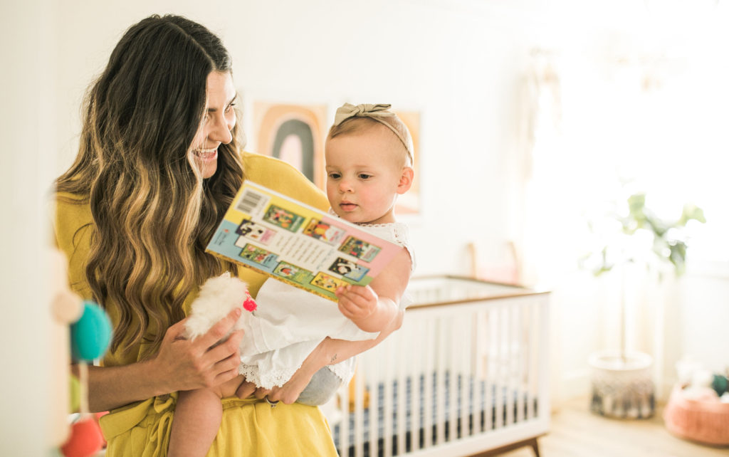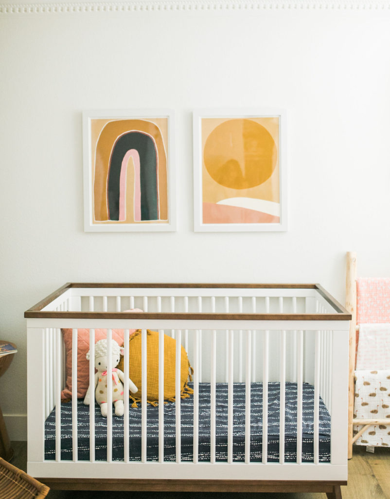 I just wanted to design a space that could grow with her, but still feel like a nursery. I didn’t want it to be super girly, but have girly touches. I used  the prints above her crib to grab color from, I love the earth tones with touches of navy blue. I knew I would spend a lot of time in her, so I just wanted a space to be fun, but practical at the same time.