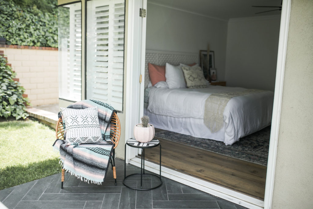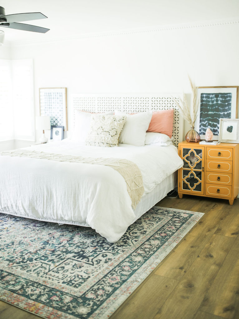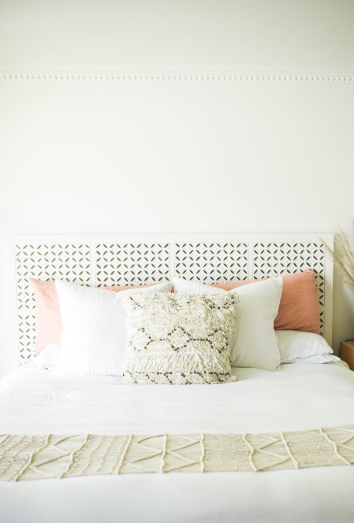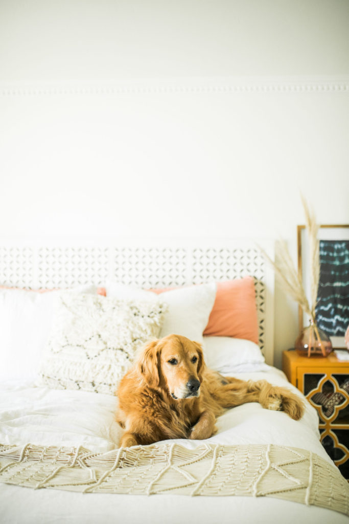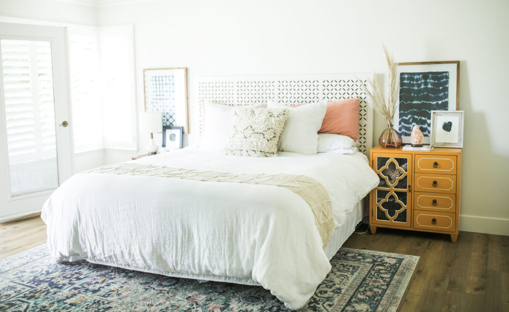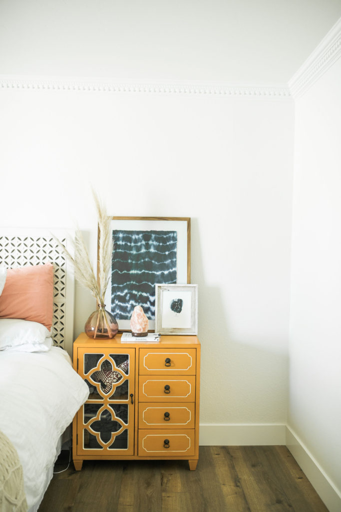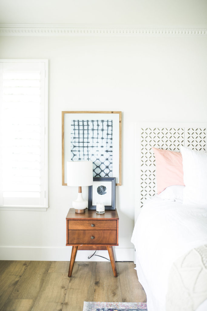 I asked Gregg what piece in our home that screams “me” and he said the leather hardware on our bar  he followed it up with he’s never seen those before and thought it was a very unique idea. Gotta love him. If I had to choose one item it would probably be our headboard. We’ve had it for a long time and even though we plan on redoing our entire bedroom furniture soon. I just love the headboard. It has a Moroccan modern vibe and I just love it. We will most likely move it into our guest room when we redo the master because I love it so much.