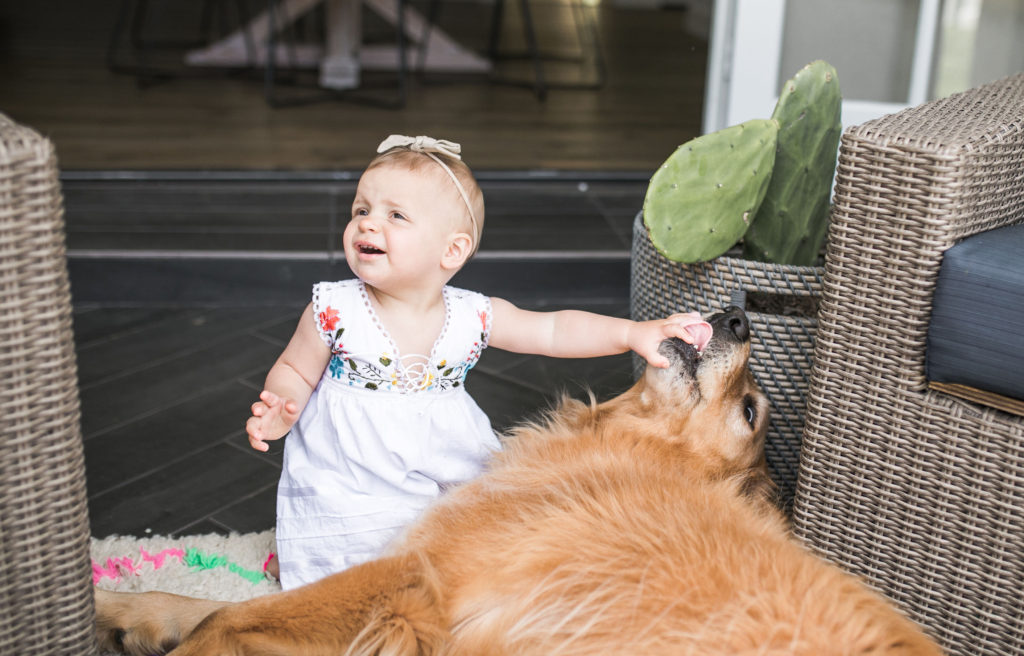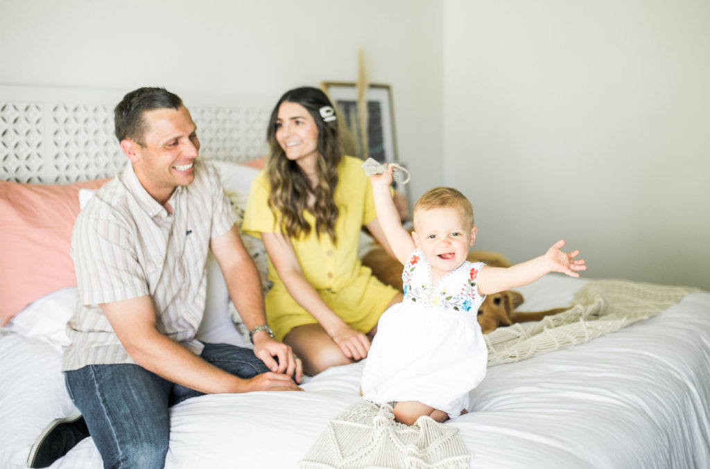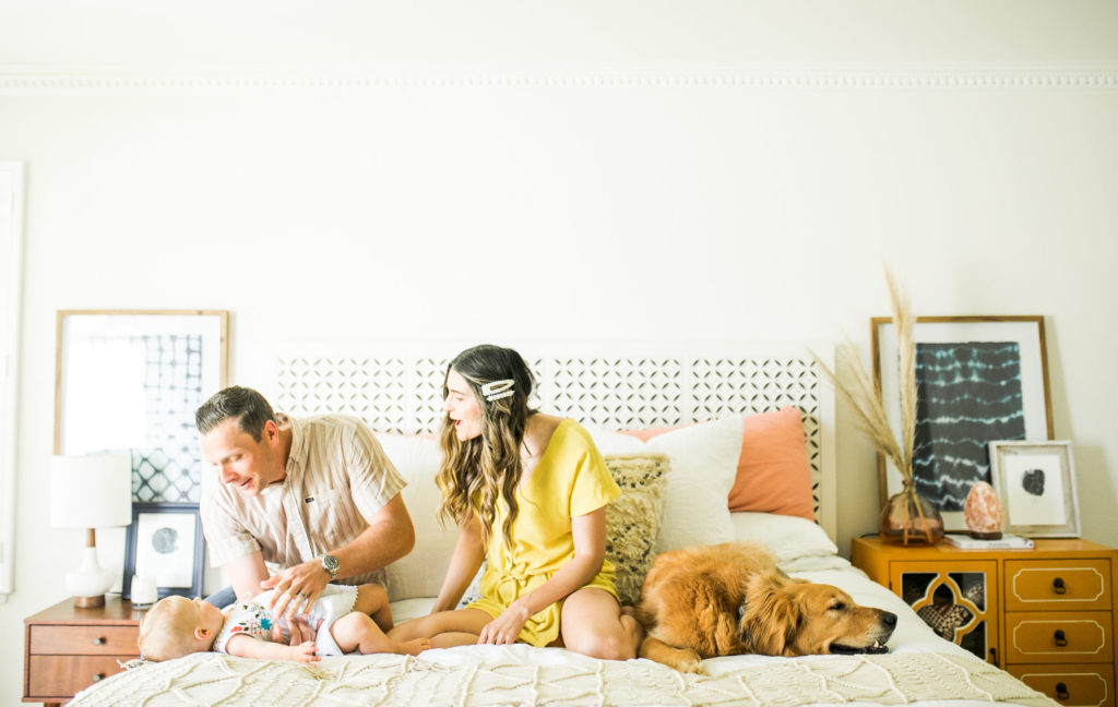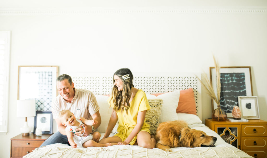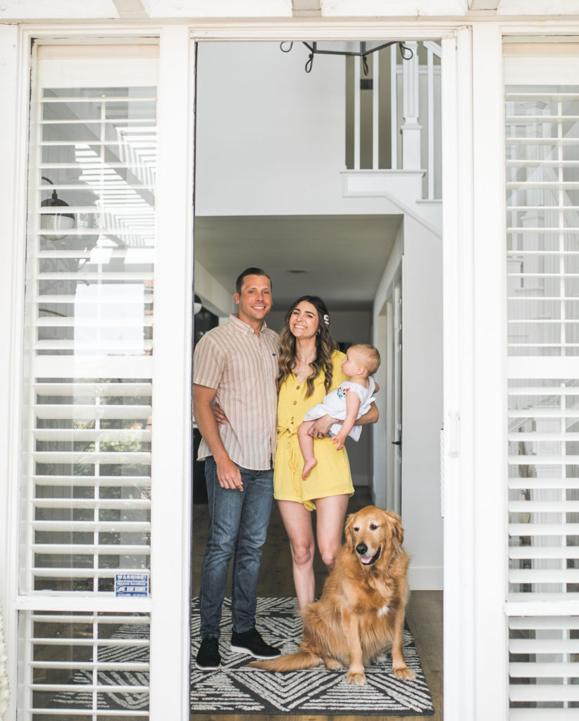My husband Gregg and I have known each other since preschool, but it wasn’t until senior year of high school we started to date. We’ve been married for almost 7 years. We have a giant golden retriever named Sampson who was our baby before our baby. Last year we welcomed our first daughter name Willa, who is our little miracle. My husband is a financial advisor, and I’m now a stay at home mom and run my blog “Sloppy Elegance.”