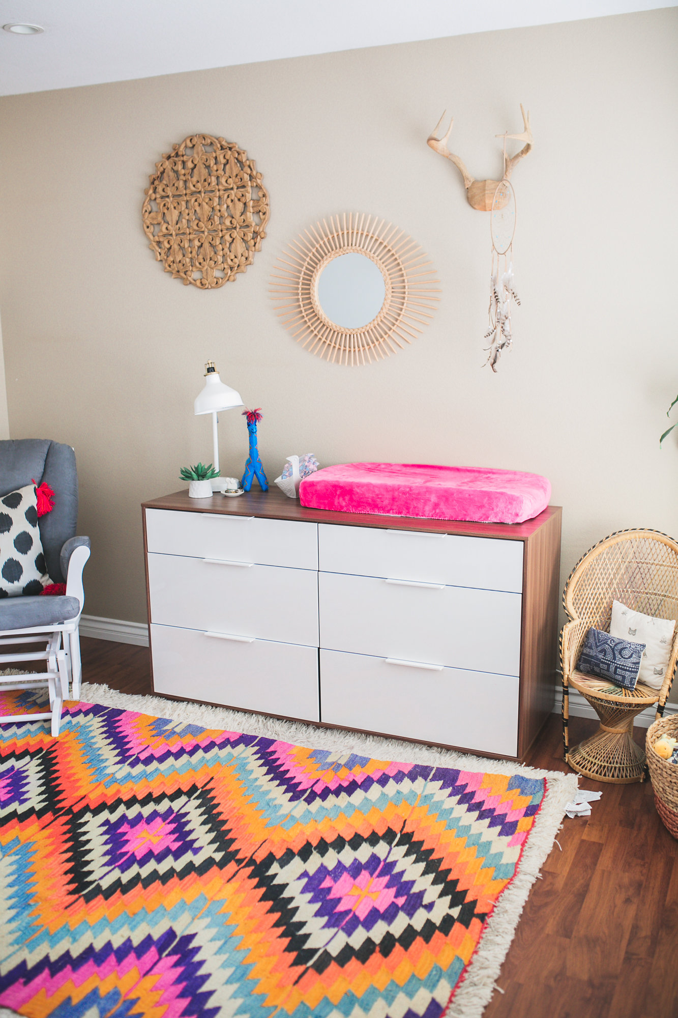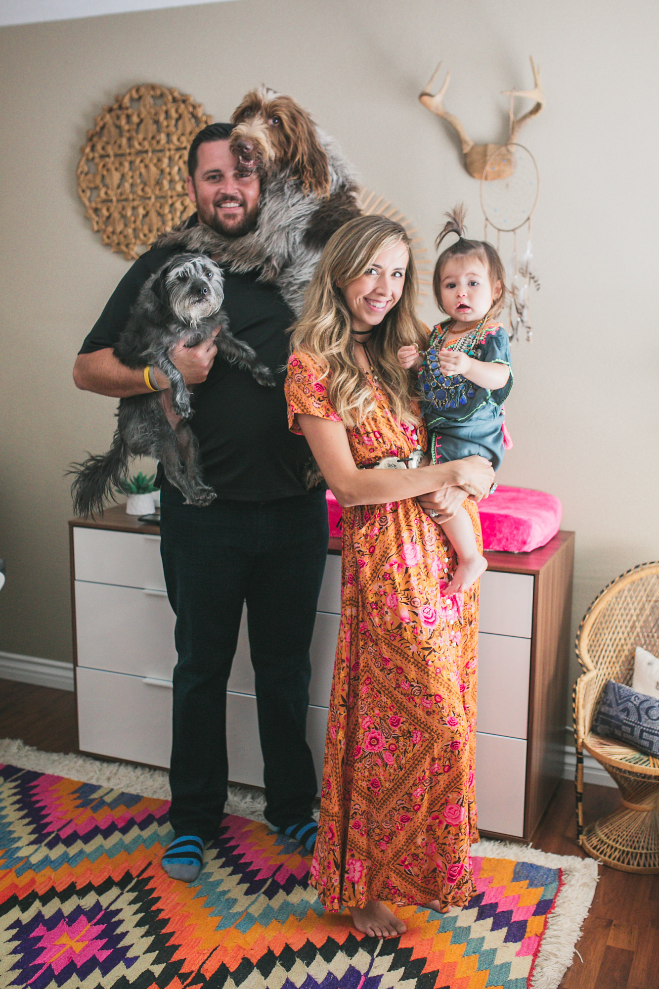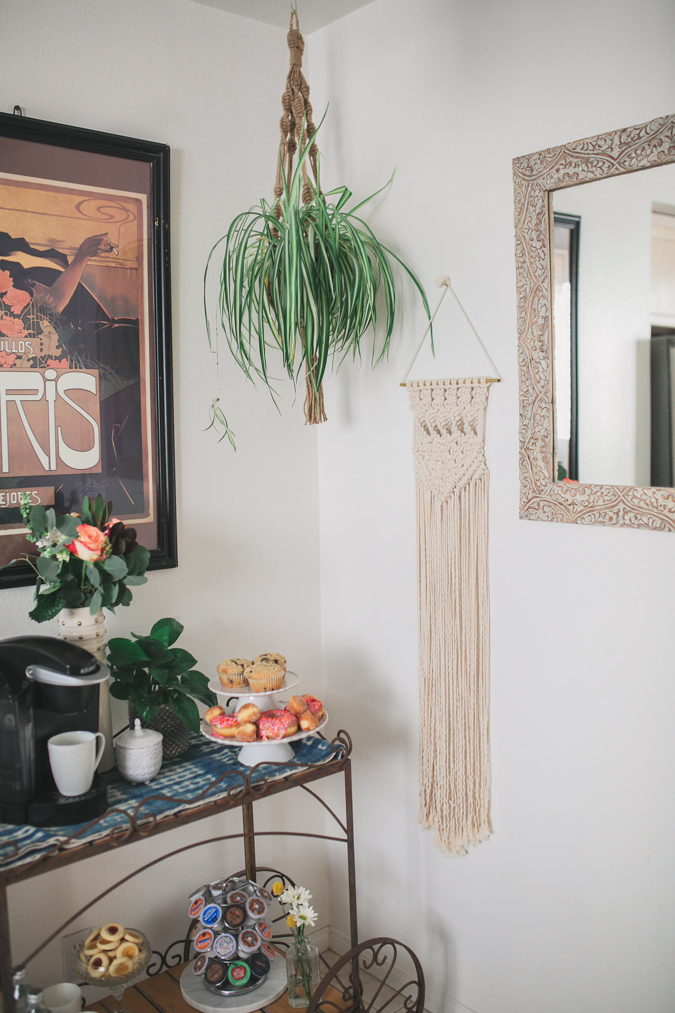 How does your creative job reflect in your home design?I mean, if you didn’t notice its pretty much everything! You should have seen this place when I moved in with Steve. It was walking into Pirates of the Carribean at Disneyland. Literally decked out in all things Pirate! I’m talking a life size Pirate statue just standing there in the corner of the kitchen and a pirate ship hanging from the dining room ceiling. I can’t even. And now its like a gypsy den with textiles all over the place, macrame wall hangings and multiple plants in every room. I owe it all to Steve for letting me literally get rid of almost everything he used to own and turning it in to a vintage boho chic home.