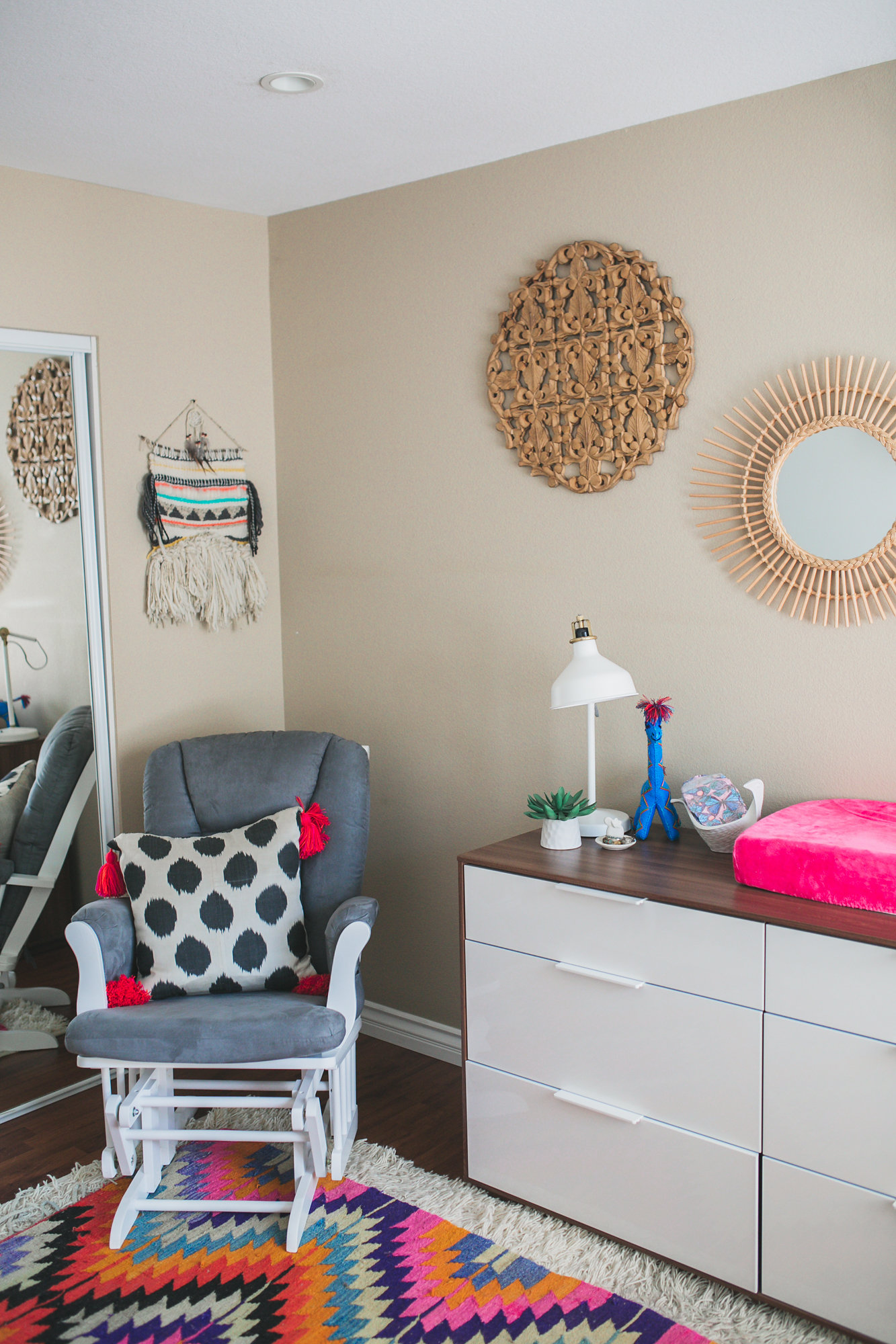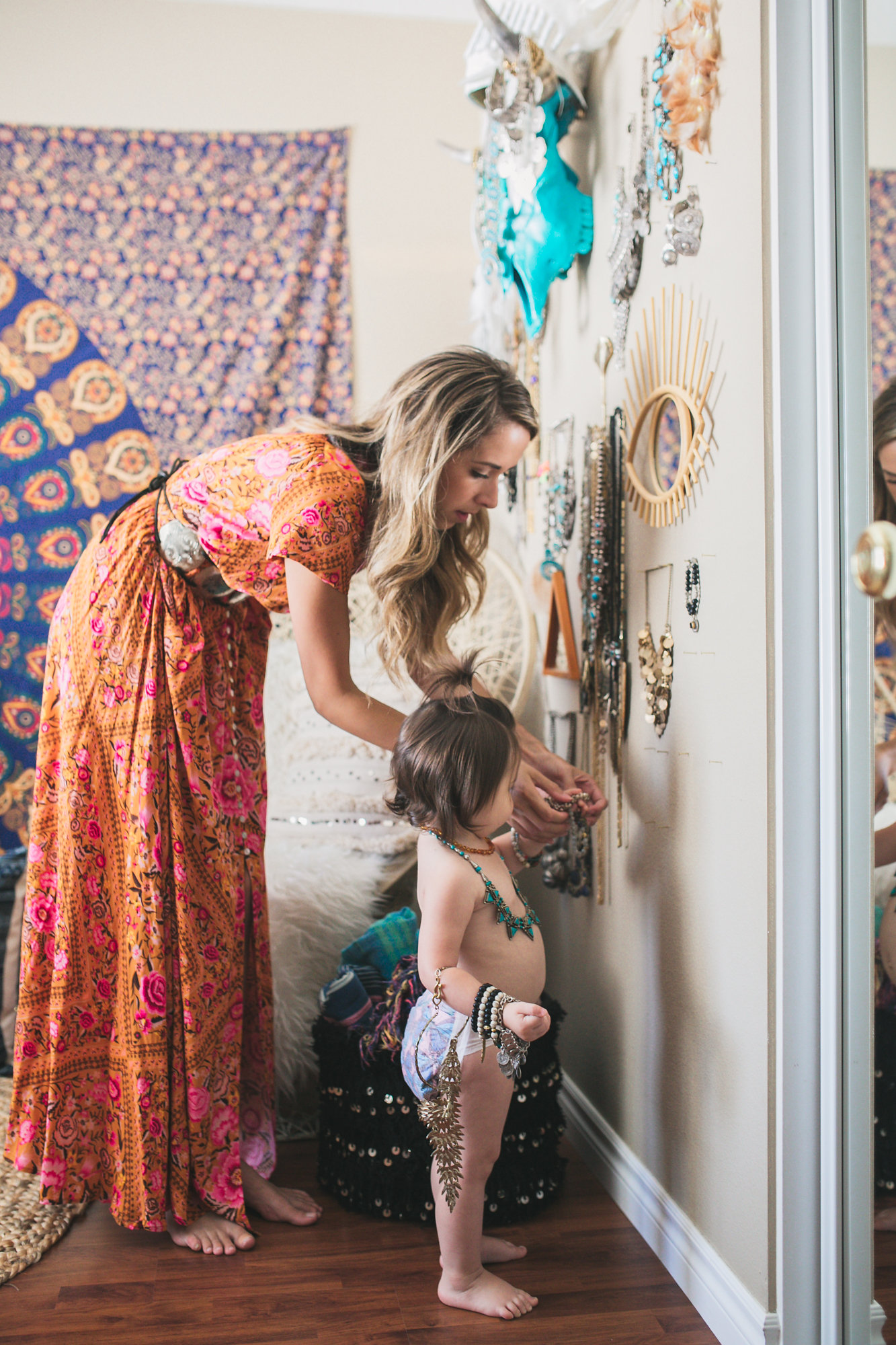 Get ready for a fun and eclectic home tour today that just screams boho!! Sometimes in this industry you are lucky to meet people and really connect and become friends with them and that is how we feel about Lisa Scheuremann, owner of St Eve Jewelry! We have styled events for her and been to events with her and over the past few years we have fallen in love with how driven she is and how dry her sense of humor is, haha! This talented lady is an amazing business woman and mom who really makes it all look easy and does it with a smile. Her home is full of vibrant colors, lots of greenery and a jewelry room that will blow your mind!! Plus, her daughter is just about the cutest thing we’ve ever seen! Keep scrolling to see the beautiful photos of her home and a glimpse into her life and business.
