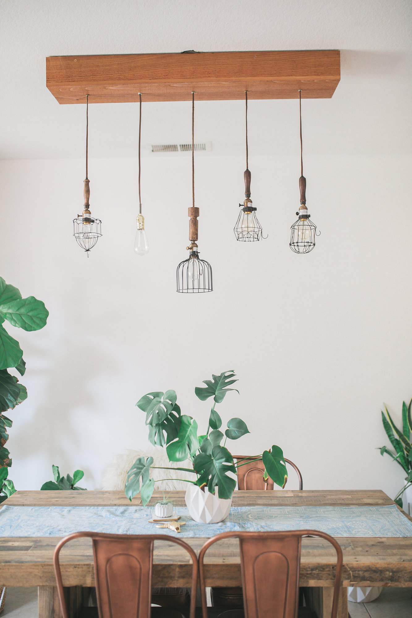 Yes! I have a couple favorites but my most coveted piece in my home is my dinning room light fixture. My dad helped me design and build it. I got the lights fixtures from Anthropologie when I used to work there as a merchandiser and I had them for years before I did anything with them. But I love the modern look of it with the vintage light fixtures.