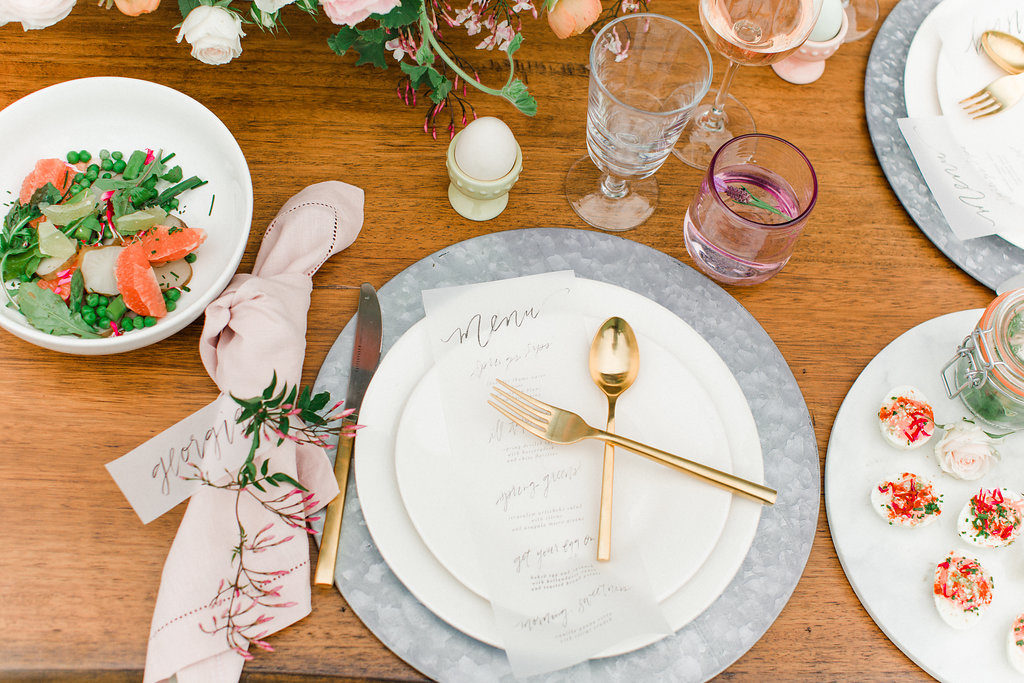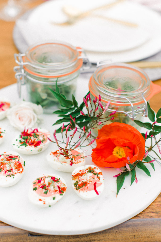 Last but not least the food! I created a spring filled menu that I think my guests will love. Nothing is more spring then a citrus salad, deviled eggs, baked eggs and arugula, and an amazing panna cotta that is out of this world. We will be sharing all these recipes with you! If you haven’t seen, here is the recipe for the egg dish. So yummy!