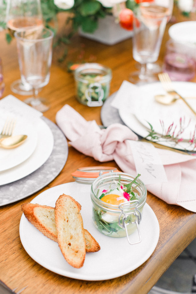 Tip: Premake all your food ahead of time. I created a spring menu that would allow me to prep the night before. All I had to do was garnish and prepare the baked eggs.