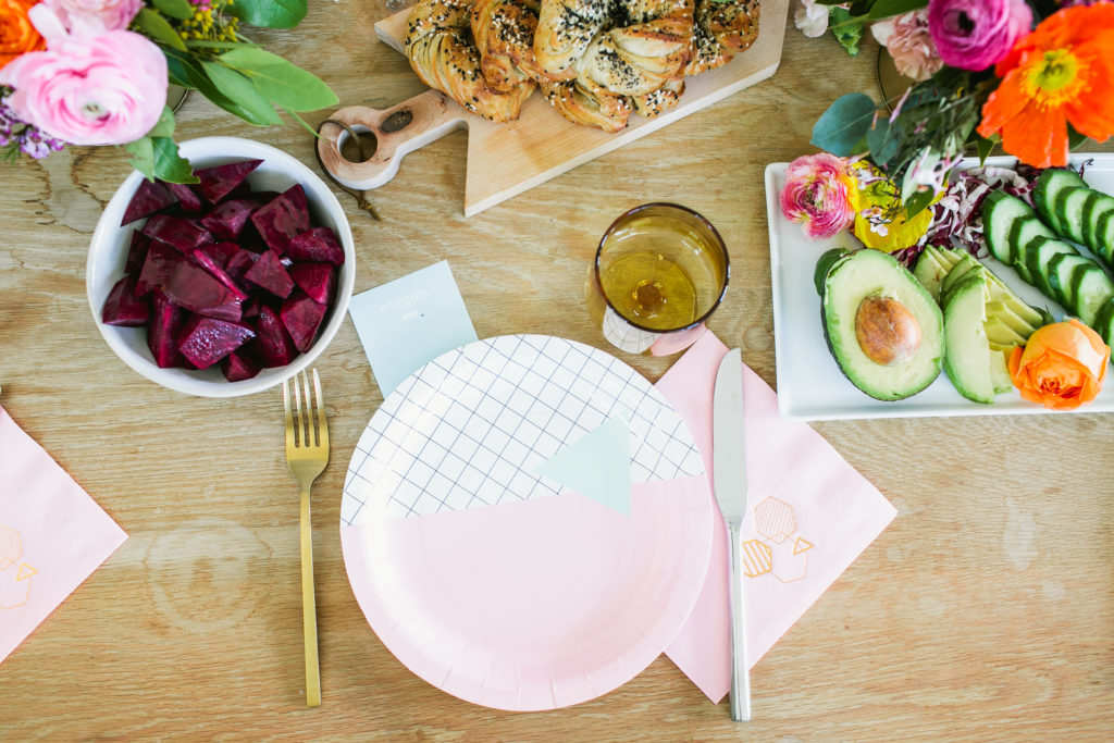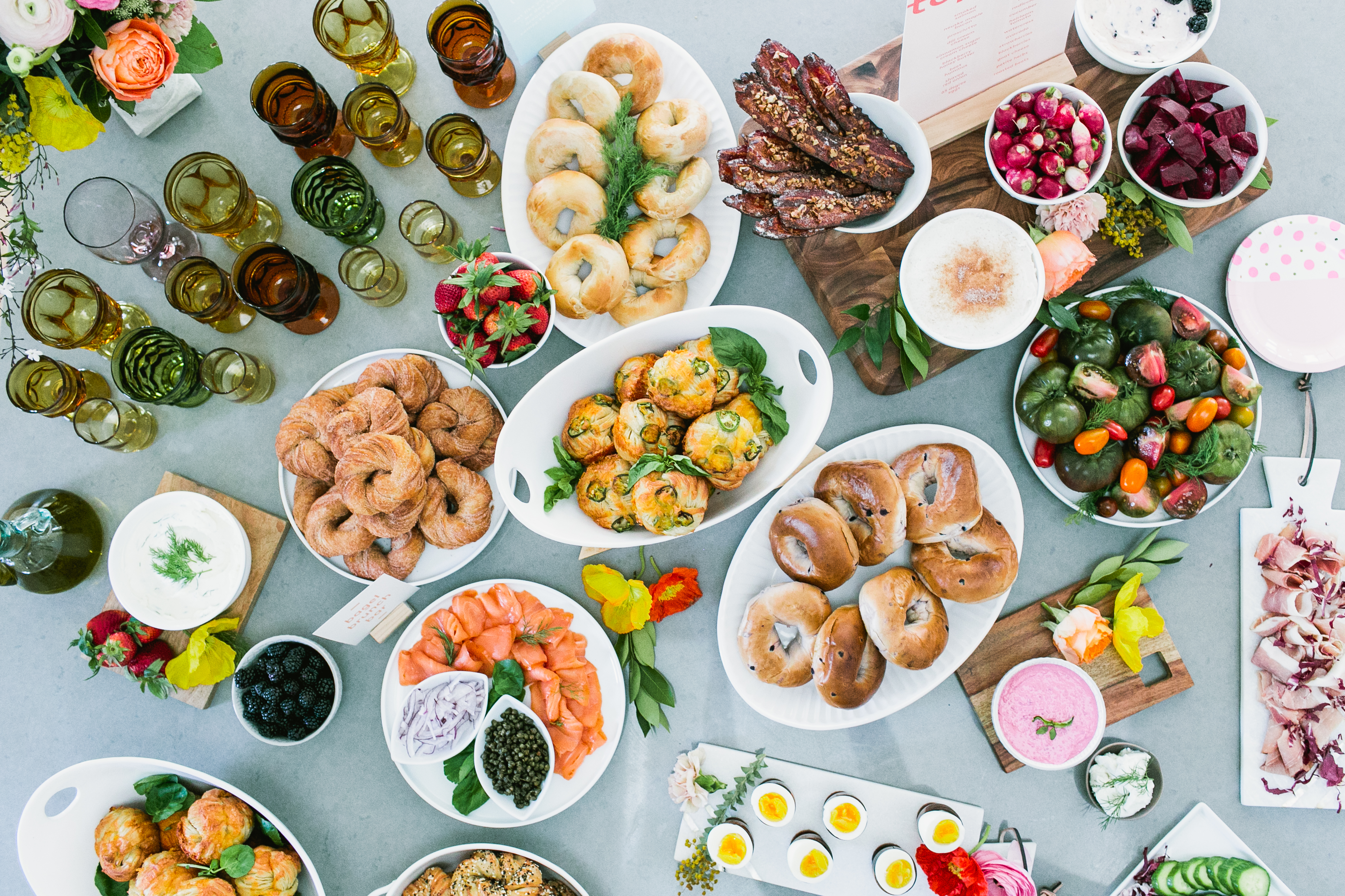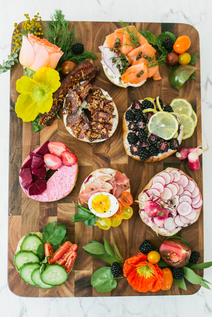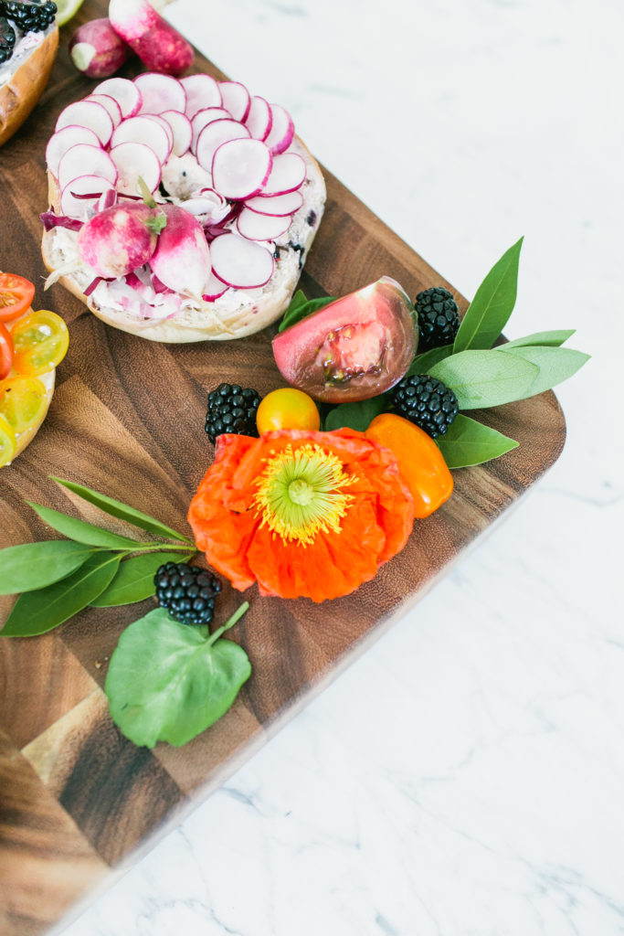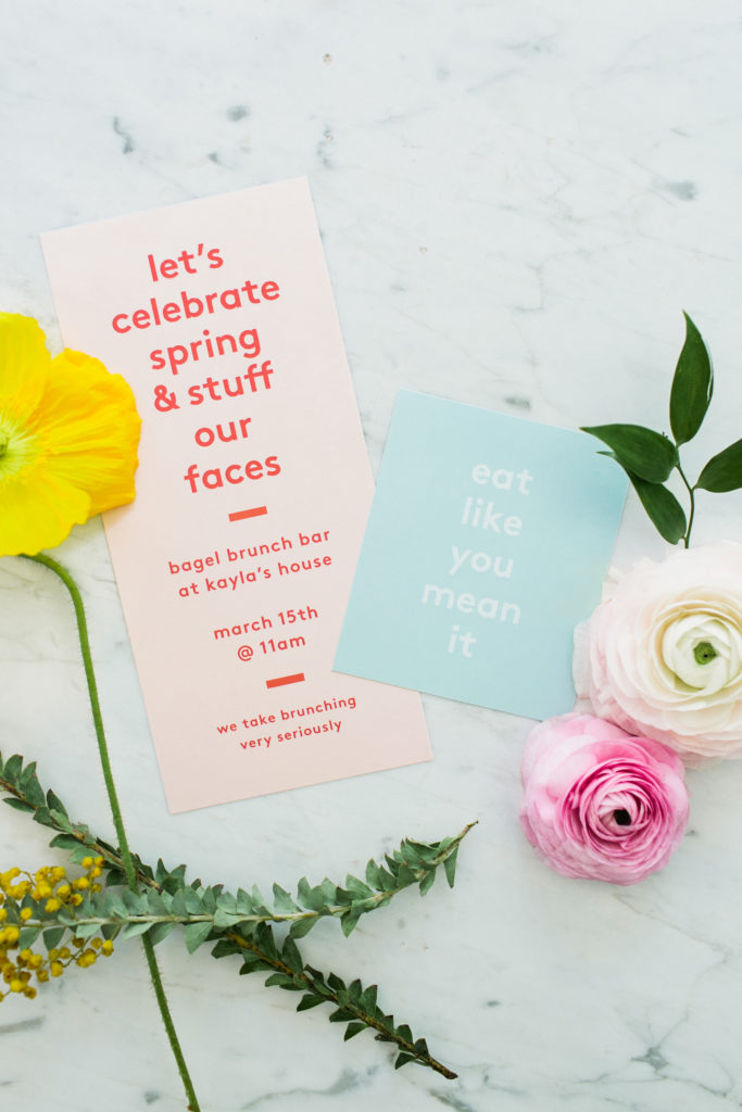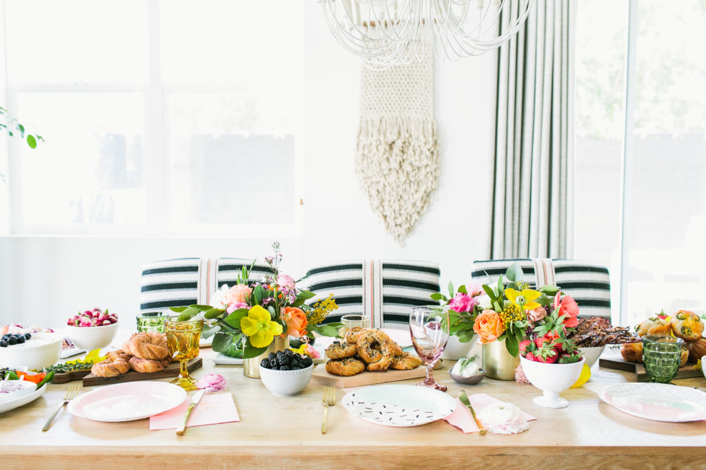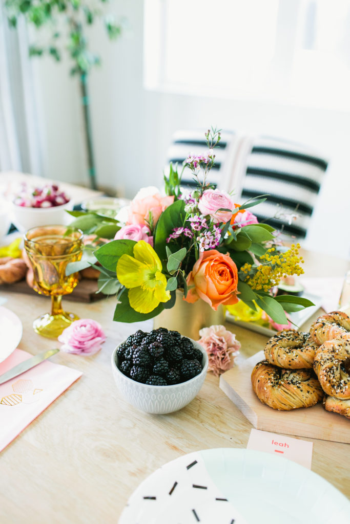 We’re just over here living Spring to it’s fullest guys! Remember our Spring list we are working on? Well today I am checking off hosting a bright & fun brunch… with bagels!!! I love any reason to entertain and with Spring in the air, that’s as good a reason as any. And well, when you add in bagels, it’s all pretty good to me!! I had so much fun teaming up with some amazing vendors to create this spread, and seriously wait till you see the spread of all the food!!! These are the kind of shoots I will never say no to! This shoot is also on Inspired By This today!!